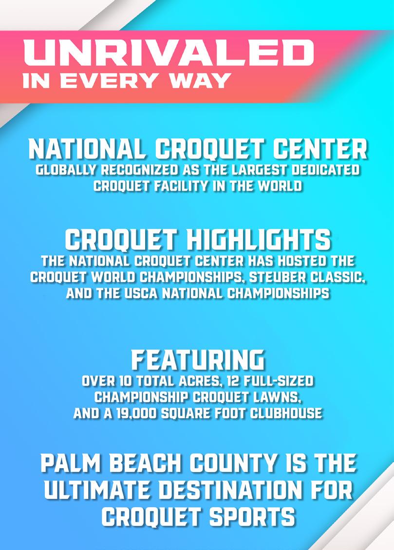 Nestled in the heart of Palm Beach County, the Charles P. Steuber National Croquet Center (NCC) stands as the heart of American croquet, a place where tradition, competition, and community converge. As the proud host of the upcoming Croquet Worlds Tournament, the NCC is ready to welcome players and spectators from across the world to experience the sport at its finest.