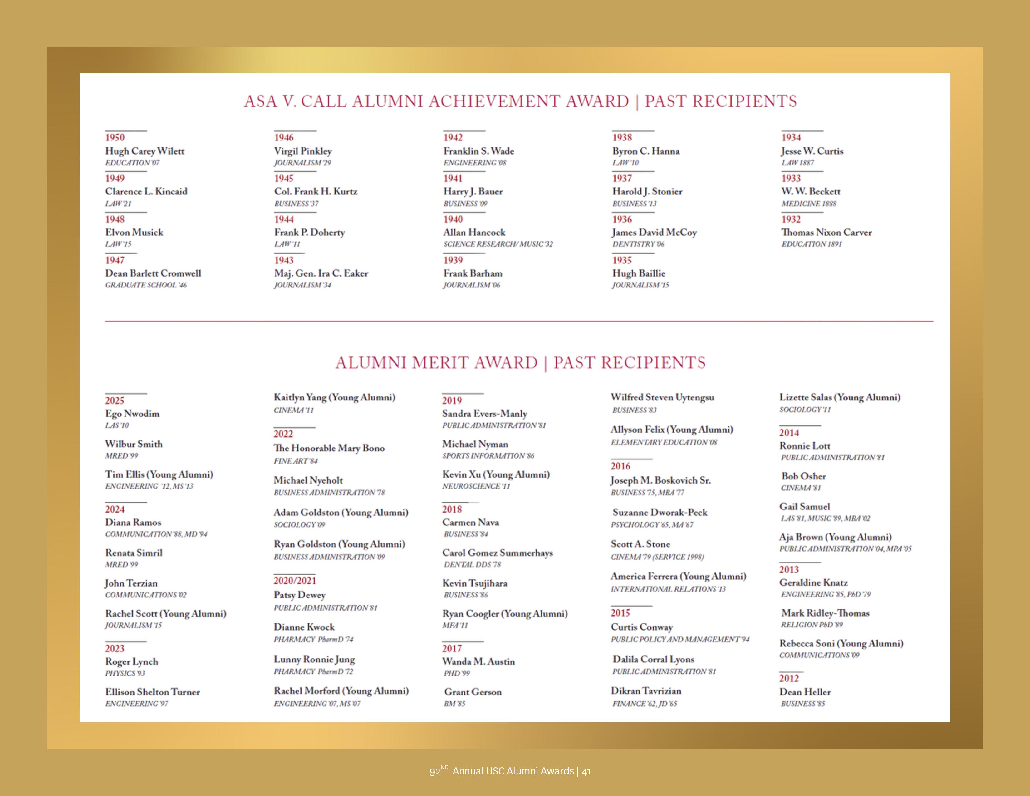 92nd Annual USC Alumni Awards by USCAlumniAssociation - Issuu