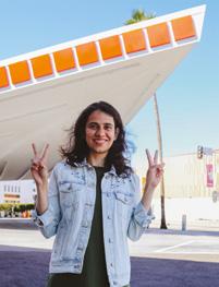 ↑ Alumna Nirali Sheth at the Beverly Hills Union  76 station, designed by her thesis subject, Gin D.  Wong, FAIA. Photo by Danielle Armstrong.
