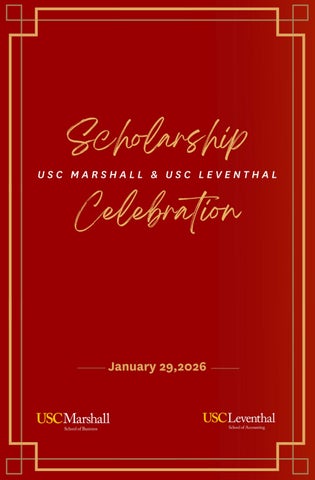 The information in this program was updated as of January 22, 2026. We strive to accurately recognize donors and scholarship recipients and apologize for any inadvertent errors or omissions. Each of your contributions makes a positive impact on the lives of students and the USC Leventhal and USC Marshall community. Thank you for your ongoing support.