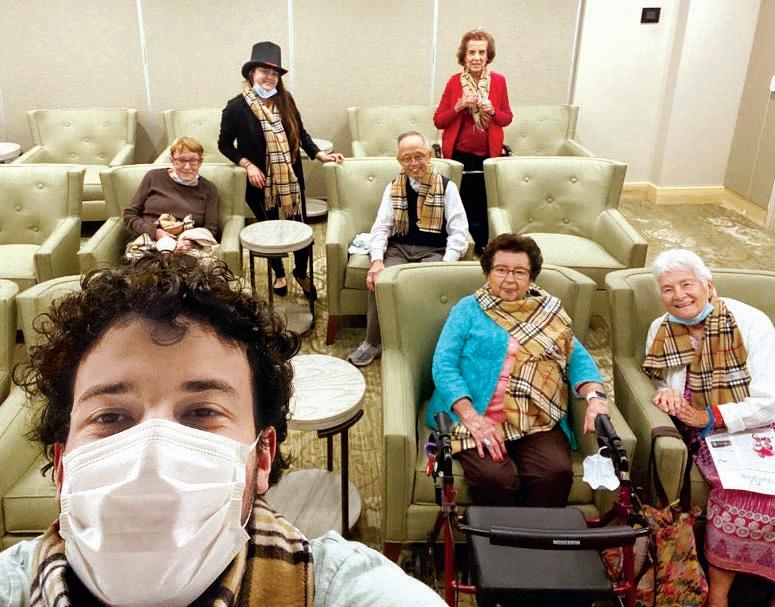 USC student Benjamin Katz, president of the undergraduate student volunteer group Brain Exercise Initiative, with retirees at Merrill Gardens