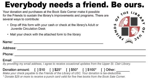 1820 McLaughlin Run Road Upper St. Clair, PA 15241 or email UPPER ST. CLAIR TODAY at usctoday@usctoday.org
