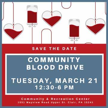 The next issue of UPPER ST. CLAIR TODAY will be the Summer 2023 issue and will be published in May 2023. Articles that were submitted but not published in this issue are on file for consideration in upcoming issues. Articles and announcements may be sent to: