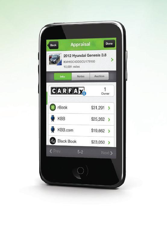 When you’re purchasing wholesale used cars, you need fast, easy access to the condition reports and values you trust. The dealers who get to the best deals frst use AuctionGenius — in the lanes, on the lot and on the go. Now you can rely on AuctionGenius for support at auction and in your dealer networks. It puts the industry’s most trusted values at your fngertips, so you can work faster and more efciently in every setting.