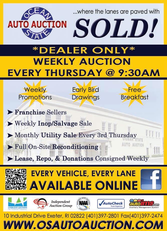 Used Car News is published the first and third Monday of each month. Subscribers: We print advertisements as sent to us by auctions and other advertisers. It is not possible to verify the correctness of listed vehicles in auction ads. Most lists are partial and all lists are subject to last minute changes by auto auctions, so before travelling a long distance for a particular auto auction event, contact the auction by telephone for a fax of vehicles in the sale. Used Car News assumes no guarantees or liabilities concerning the accuracy of any advertisements. All Rights Reserved. Reproduction in any form is prohibited without the written consent of the publisher.
