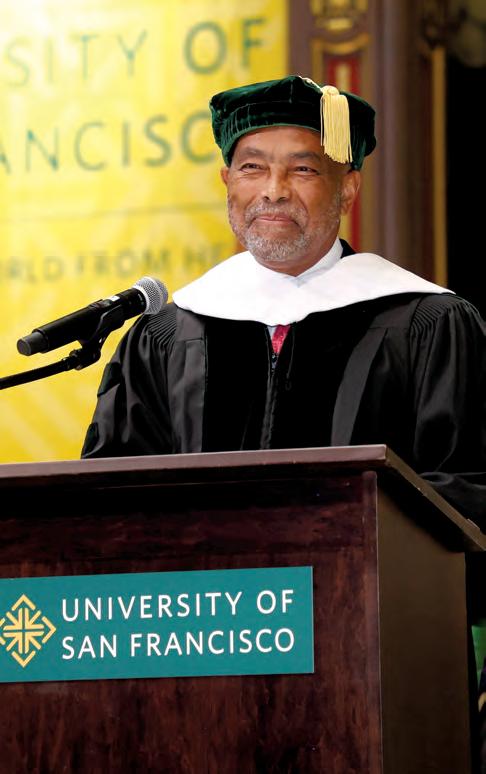 The Class of 2024 celebrated its graduation in a memorable ceremony at St. Ignatius Church on Friday, May 17. Lindbergh Porter ‘81, senior shareholder emeritus at Littler, received an honorary degree and delivered the commencement address. Rosibeth Cuevas ‘24, chosen by her peers, served as the student speaker for the event.