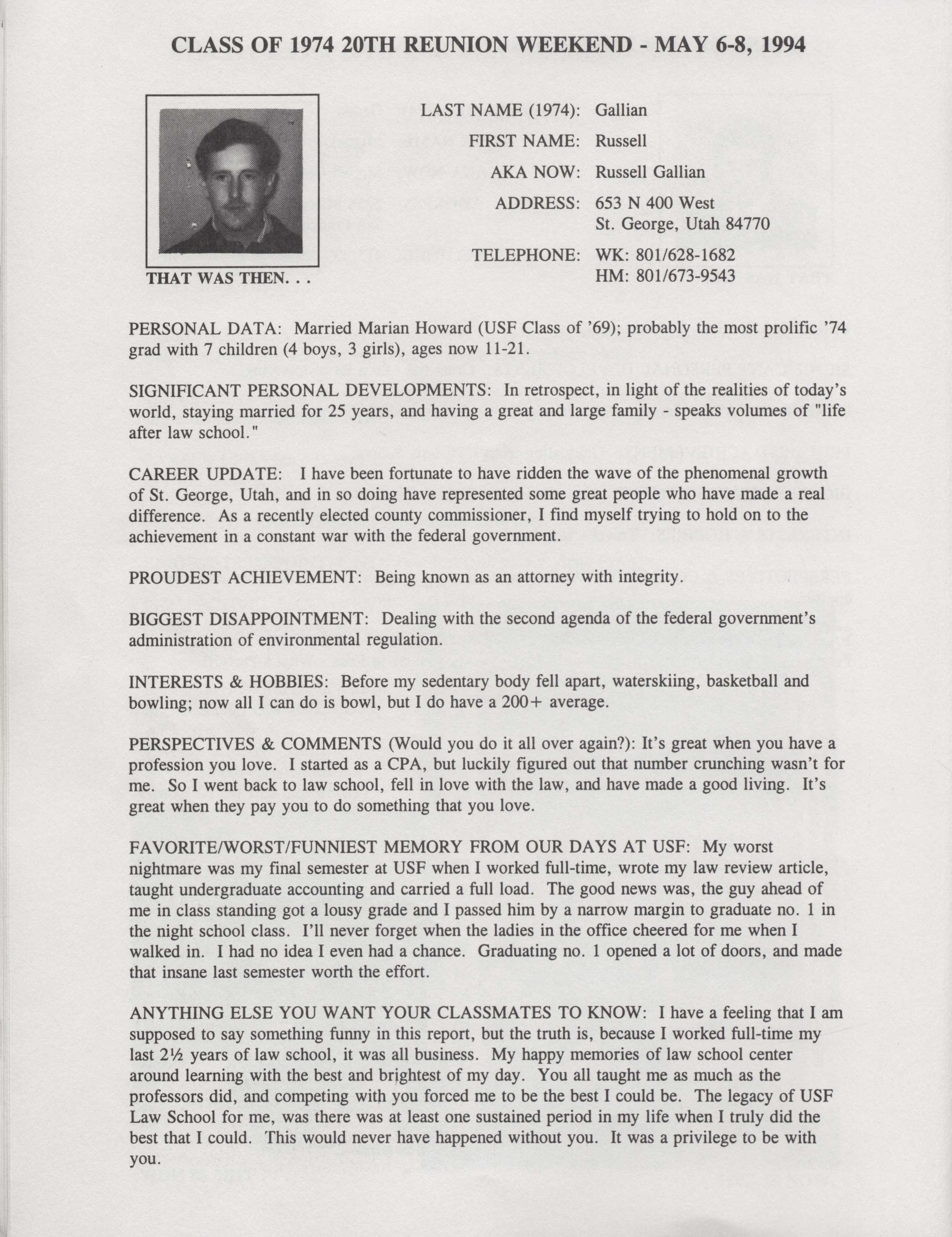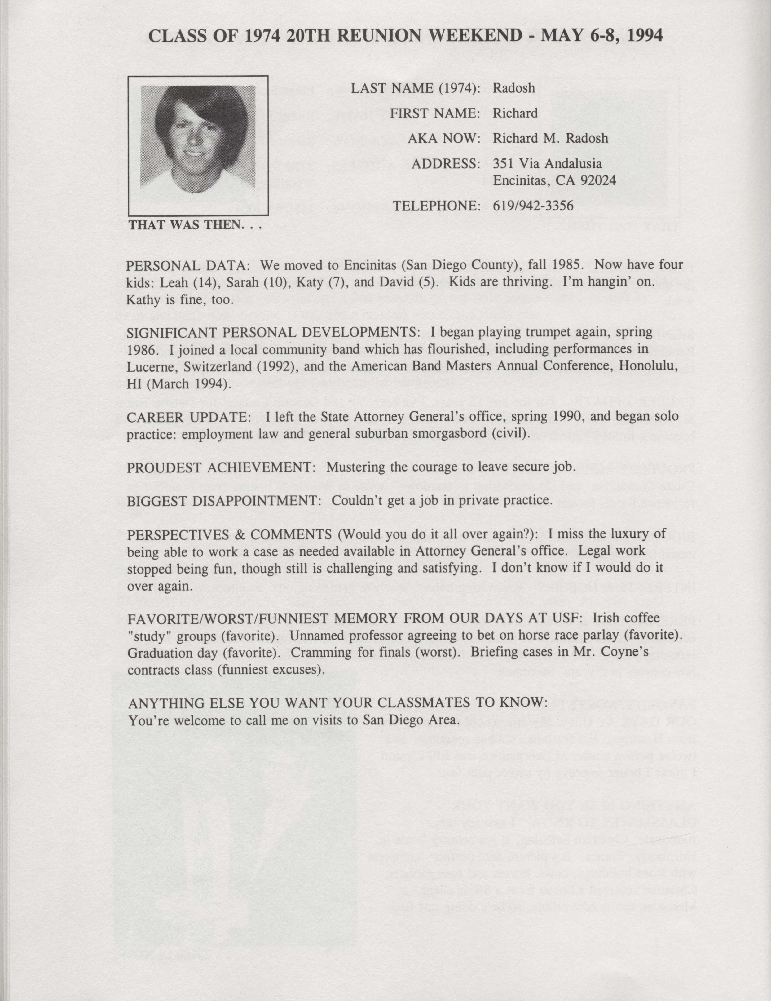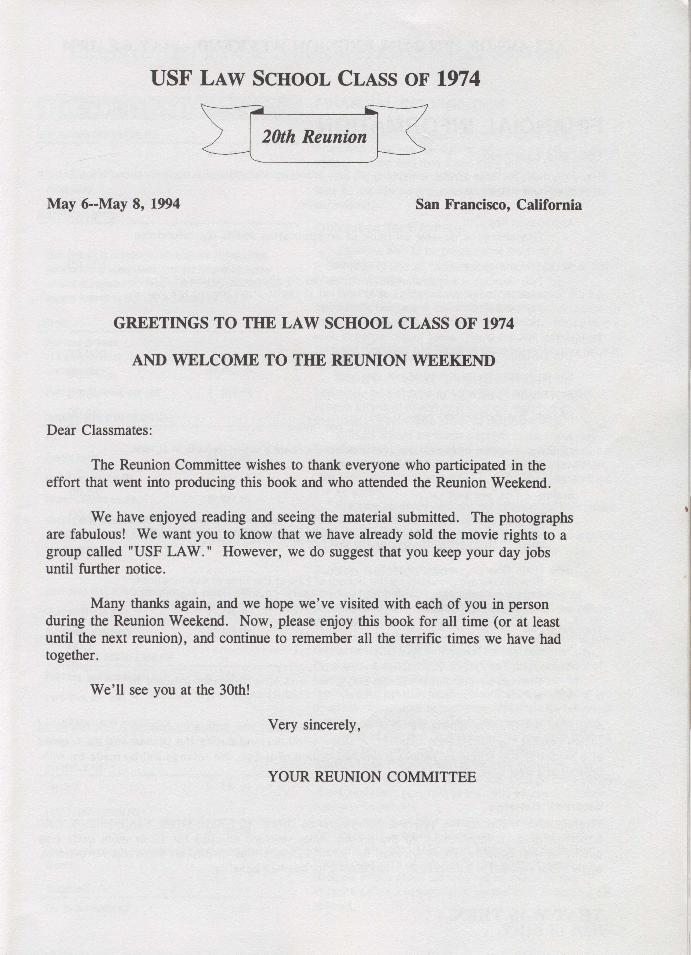 USF Law Class of 1974 20th Reunion Yearbook by USF School of Law - Issuu