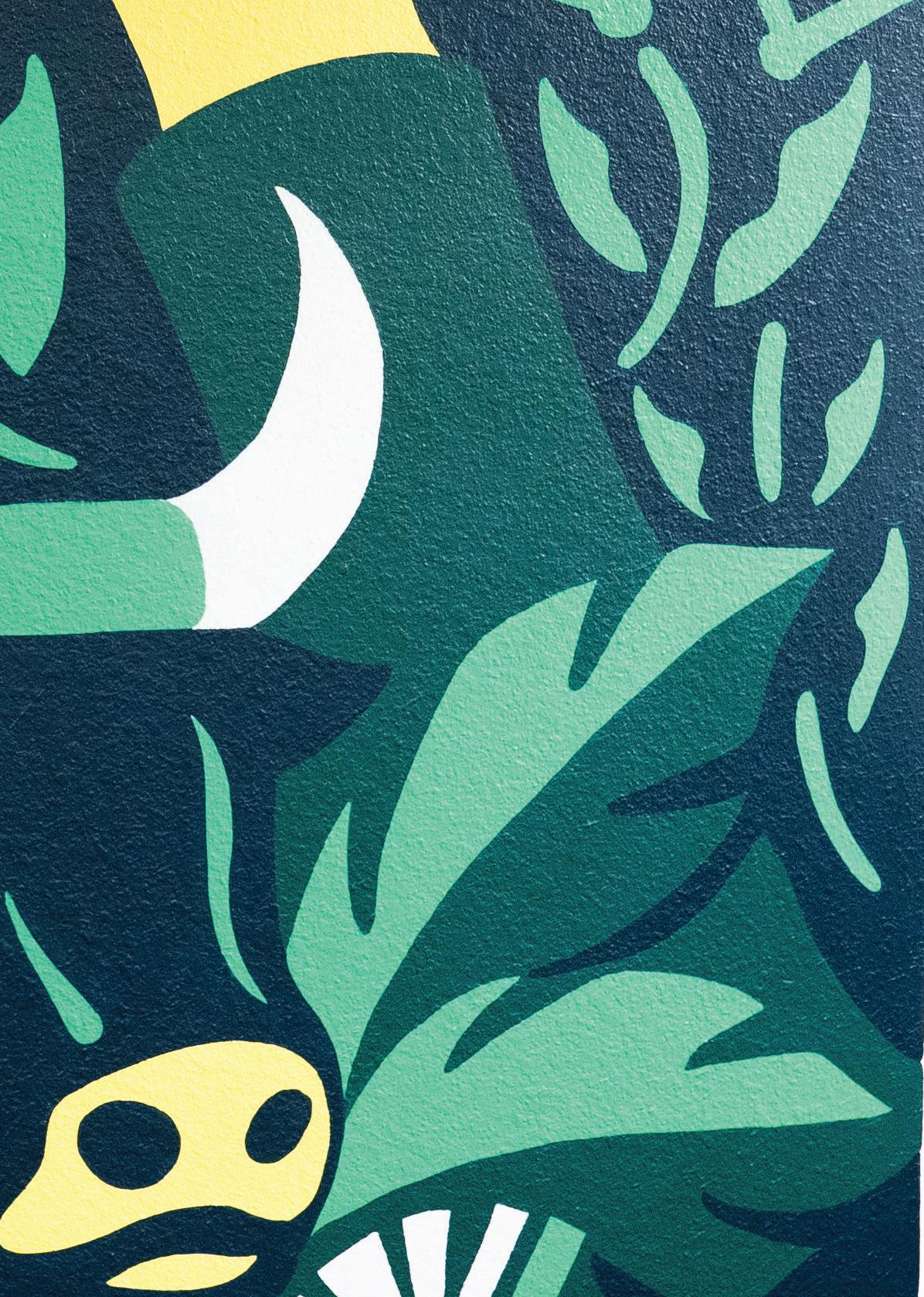 Cultivating Knowledge, a new mural in the Information Commons designed by USF alum Anthony Freese, celebrates USF’s spirit of unity, research and growth. The bull — a symbol of strength, resilience and collective identity — stands rooted within the ecosystem of books and native flora.