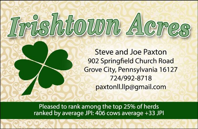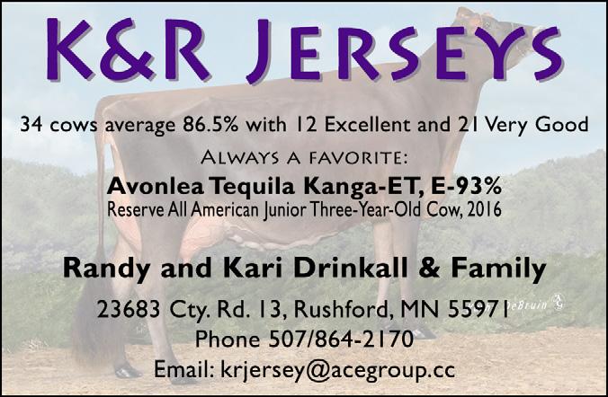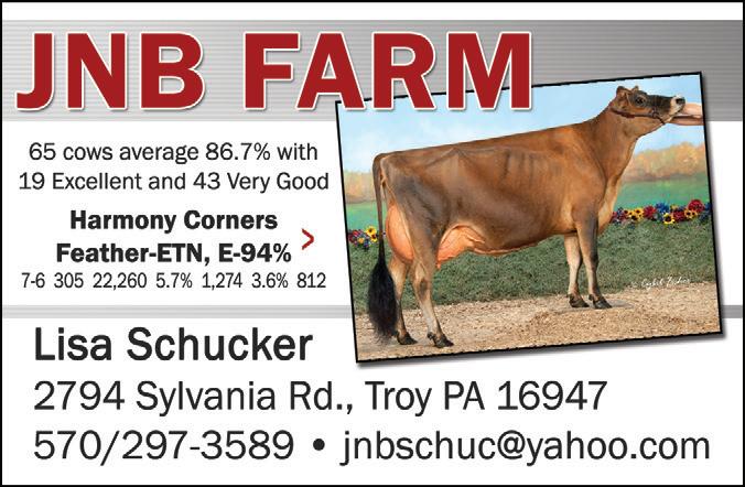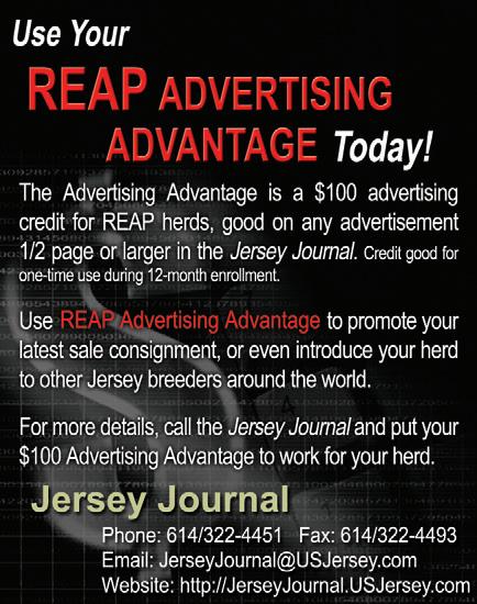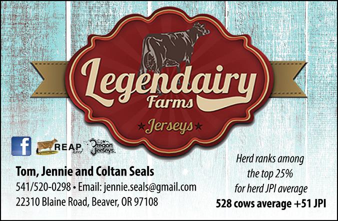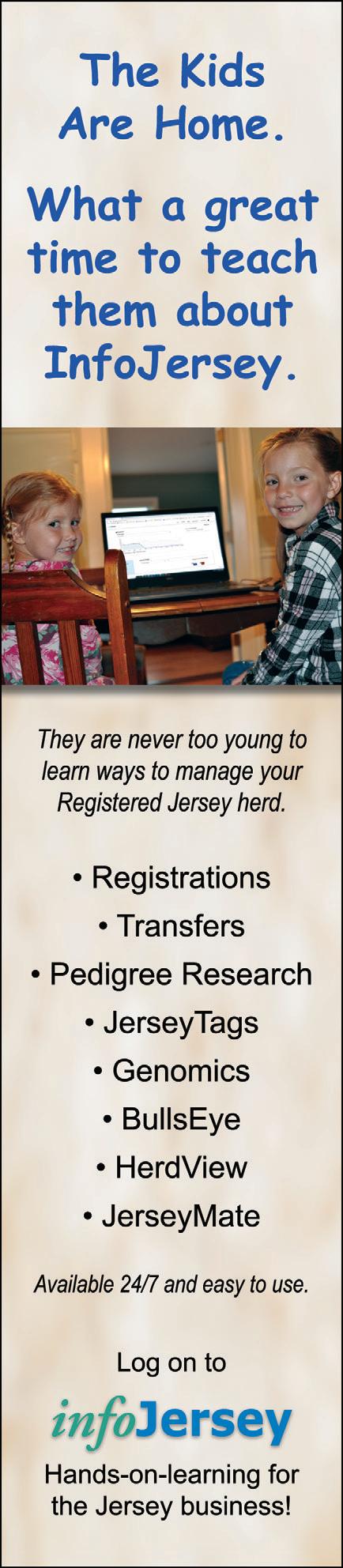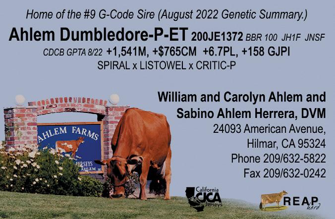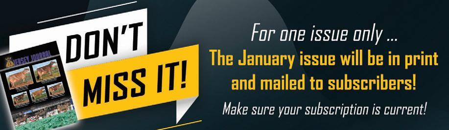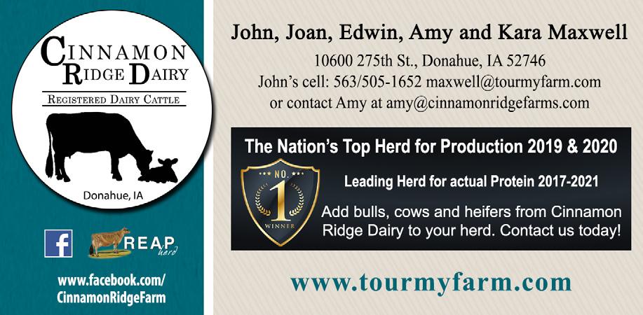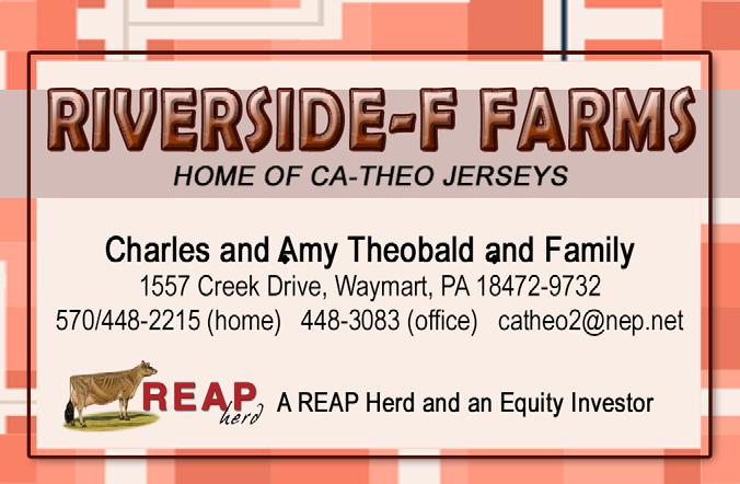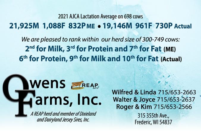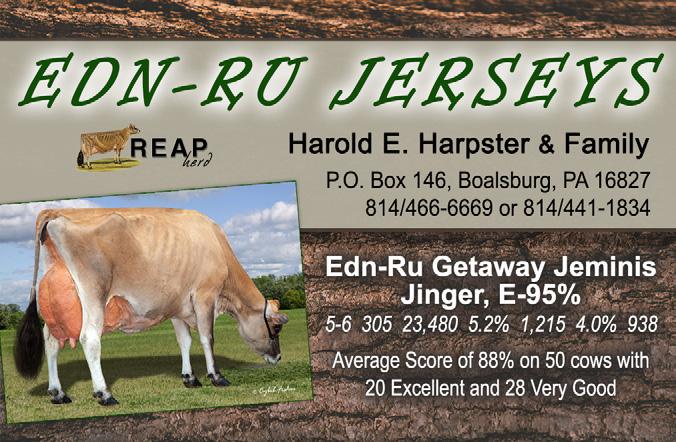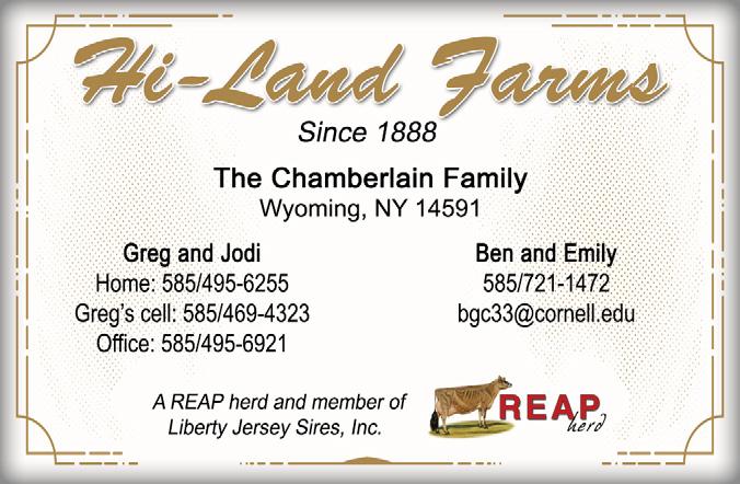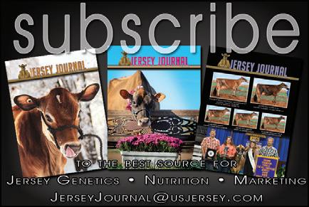 The REAP herd ranked fifth in the nation for milk and protein and seventh for fat produc tion in 2021 with a lacta tion average of 24,868 lbs. milk, 1,231 lbs. fat and 893 lbs. protein. In this issue are the results from the three regional fall Jersey shows—World Dairy Expo, Harrisburg, and Western National.