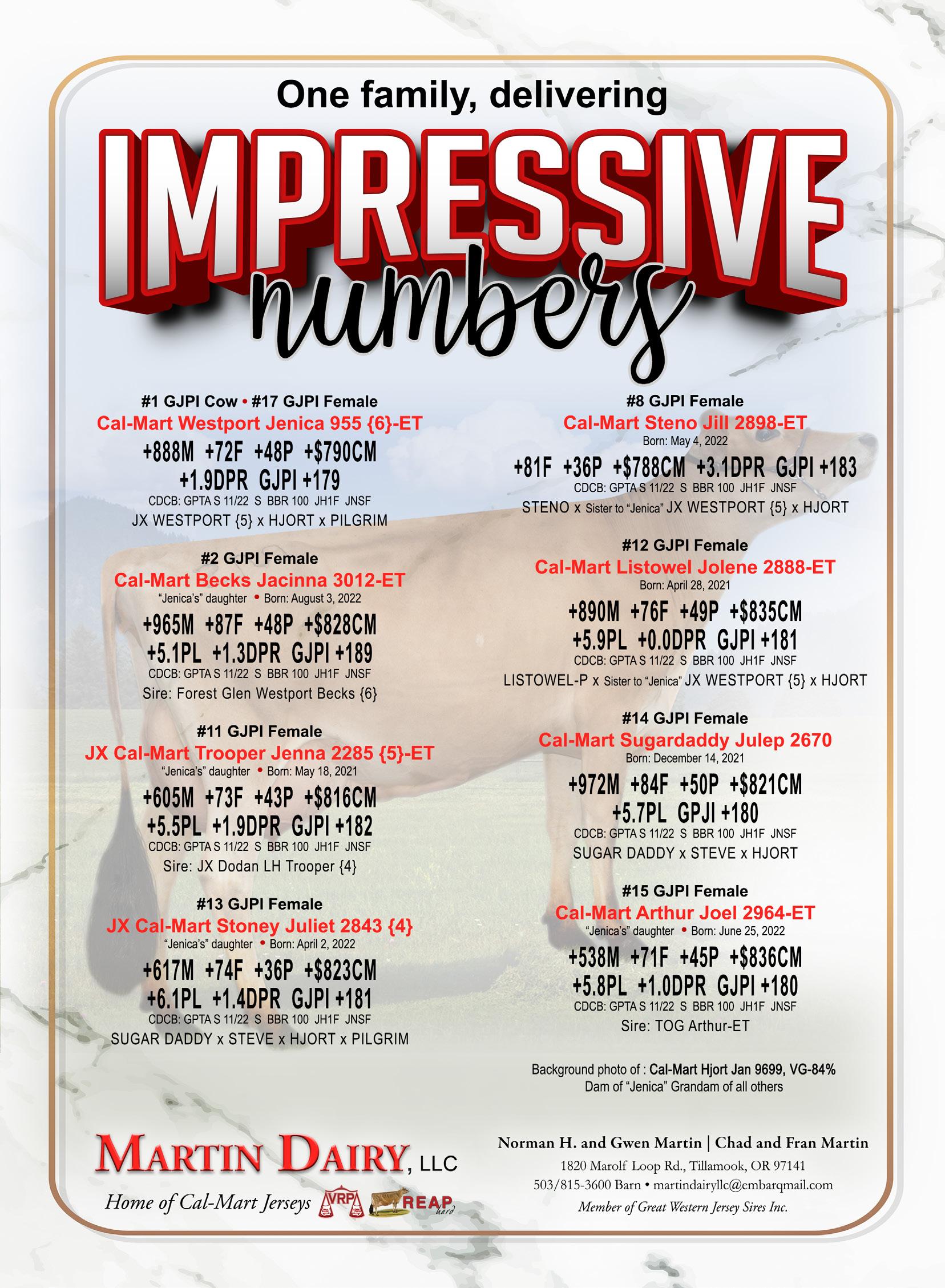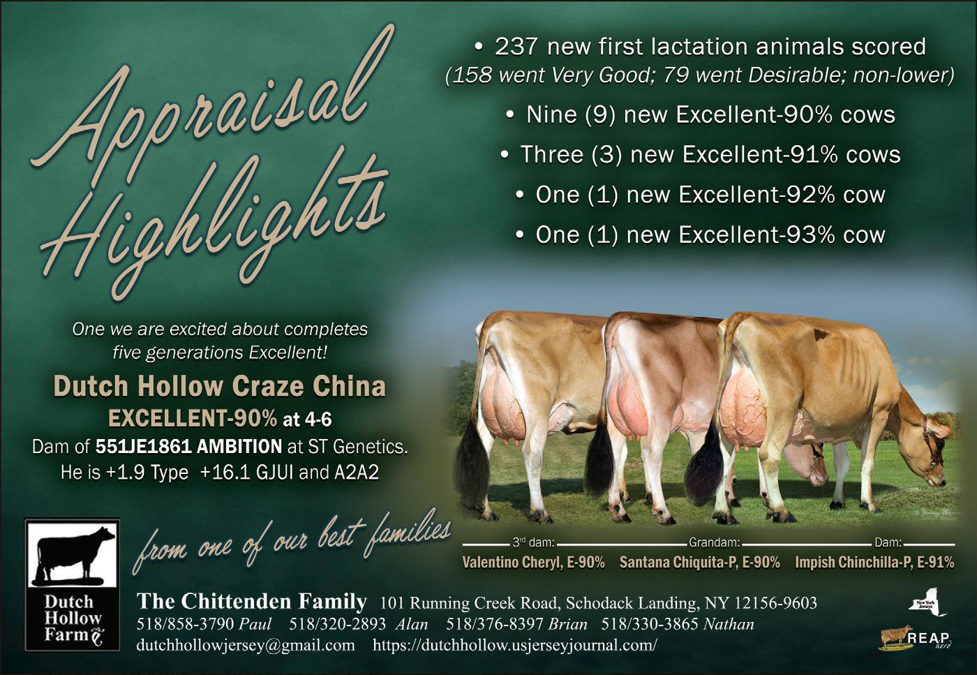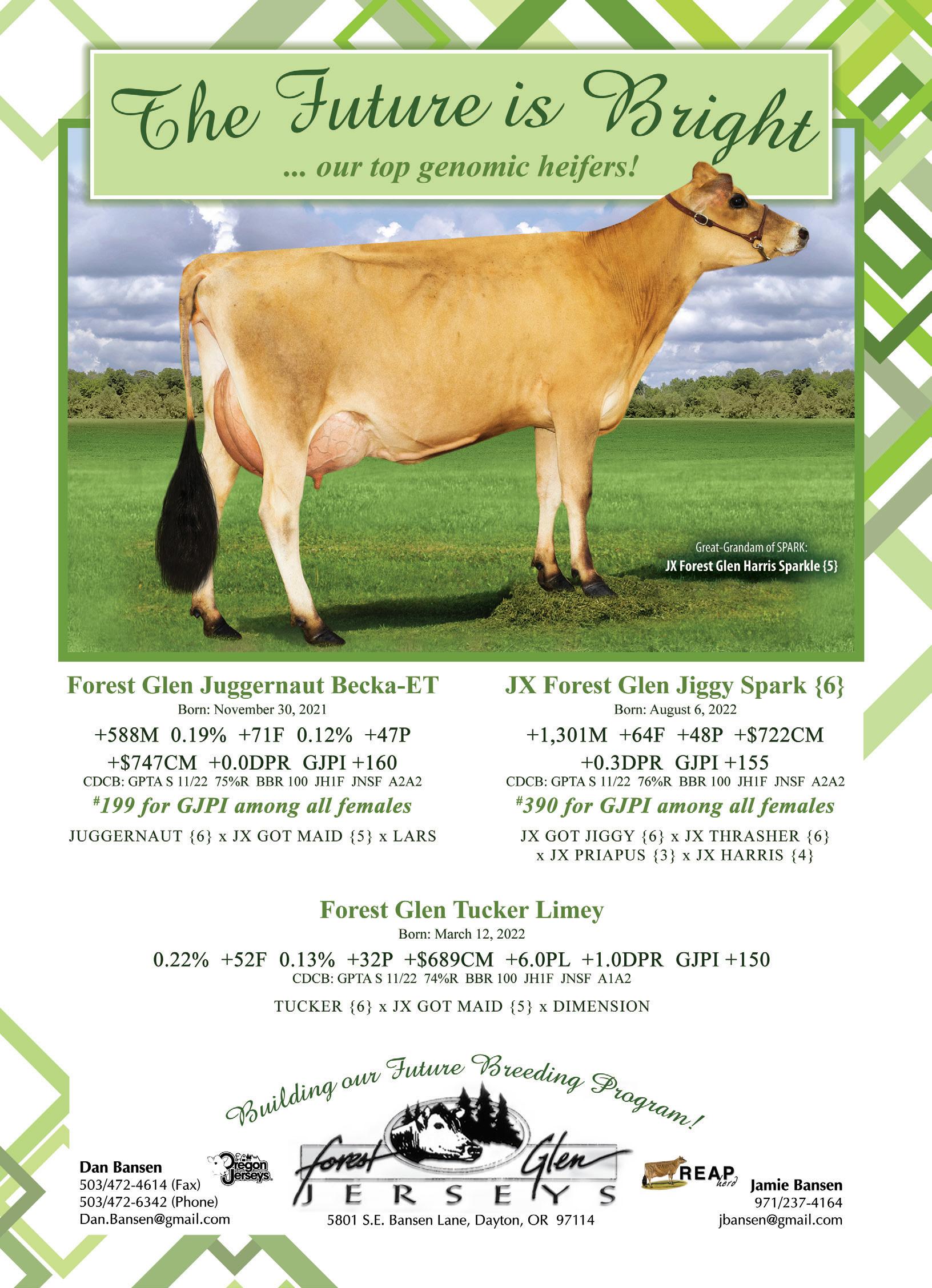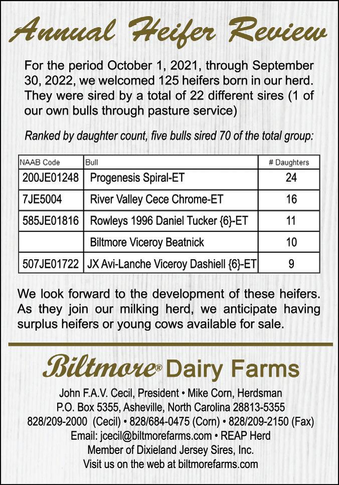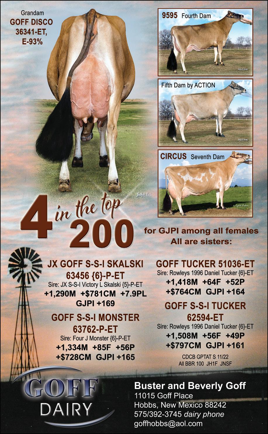 The REAP herd ranked fifth in the nation for milk and protein and seventh for fat produc tion in 2021 with a lacta tion average of 24,868 lbs. milk, 1,231 lbs. fat and 893 lbs. protein. In this issue are the results from the three regional fall Jersey shows—World Dairy Expo, Harrisburg, and Western National.
