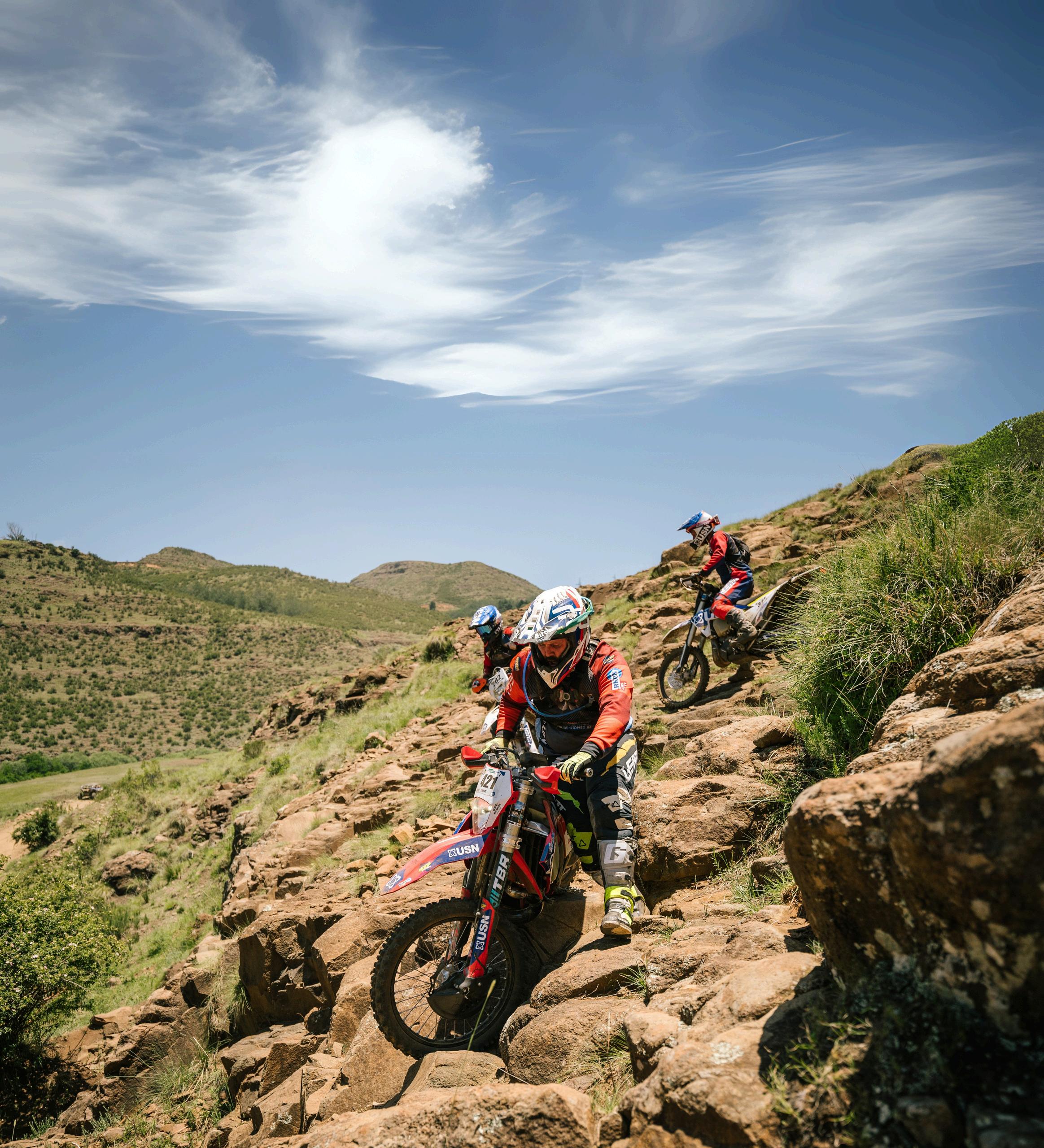 Take two Cramp Block tablets before breakfast. Sip half a serving of Epic Pro 2 leading up to the start. Carry a hydration backpack filled with Pro Enduro. Take another full serving of Epic Pro 2 at each water point. Take one Cramp Block for every hour of riding. Consume Vooma Energy gels, Vooma Endurance bar or Iso Gel during your ride. Optional: Caffeinated Vooma Energy gel or Vooma Endurance bar before the last hour of the race.