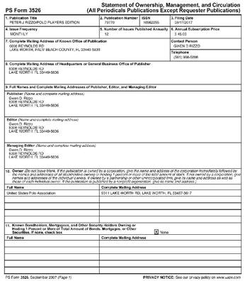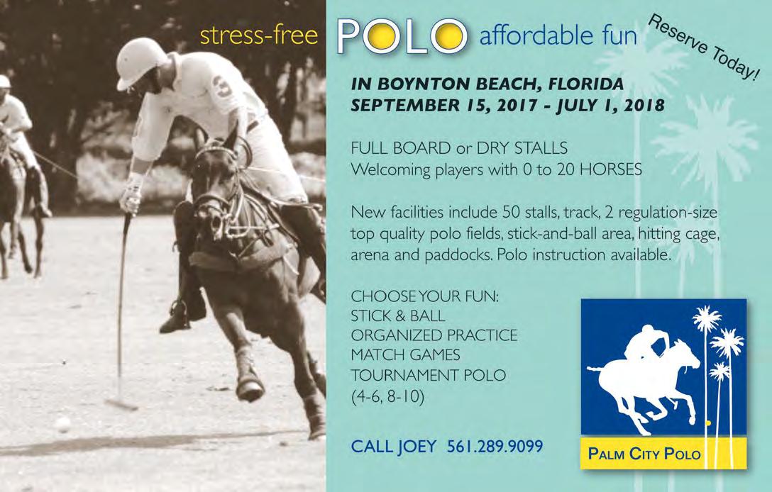 POSTMASTER: Send address changes to Polo Players’ Edition, 6008 Reynolds RD, Lake Worth, FL 33449.
