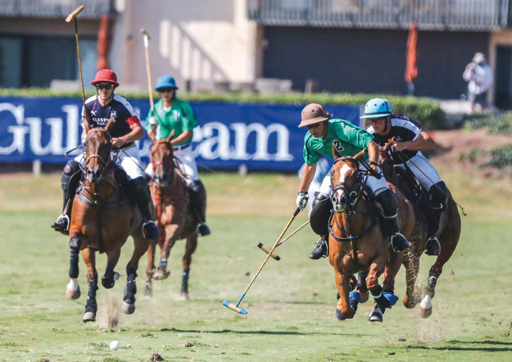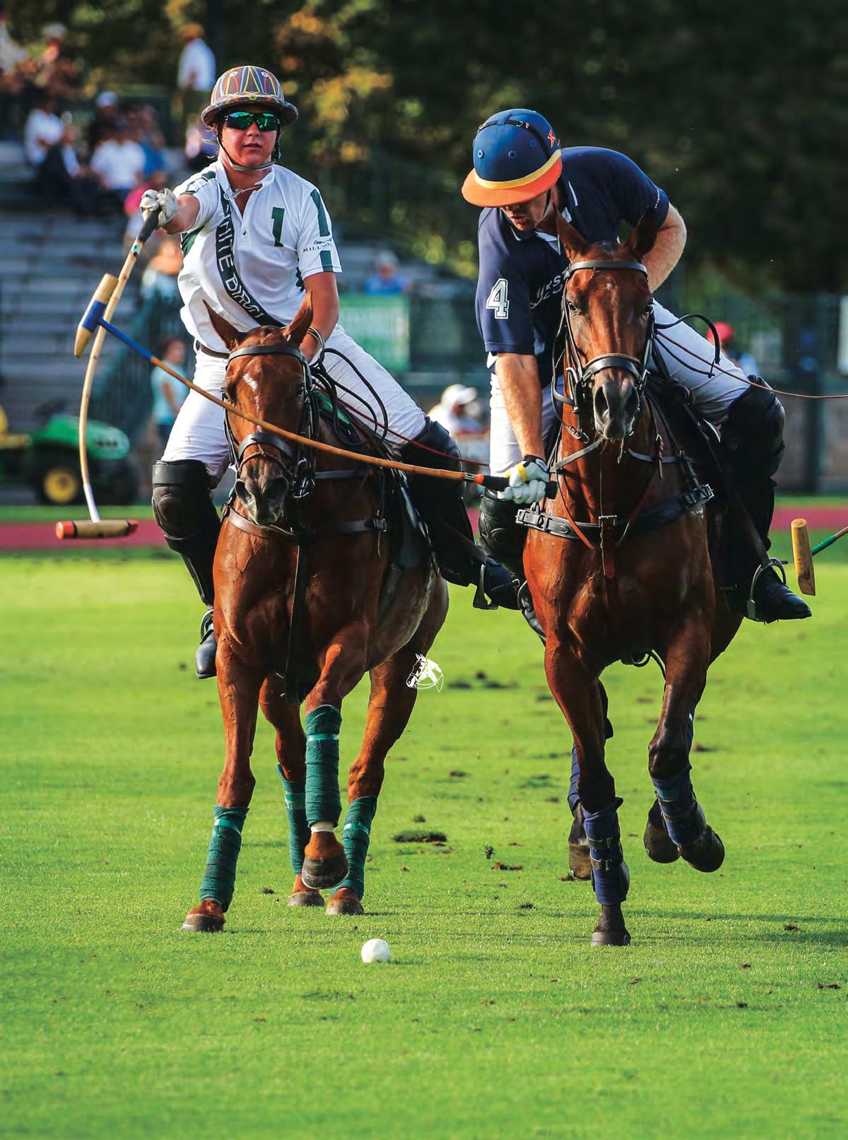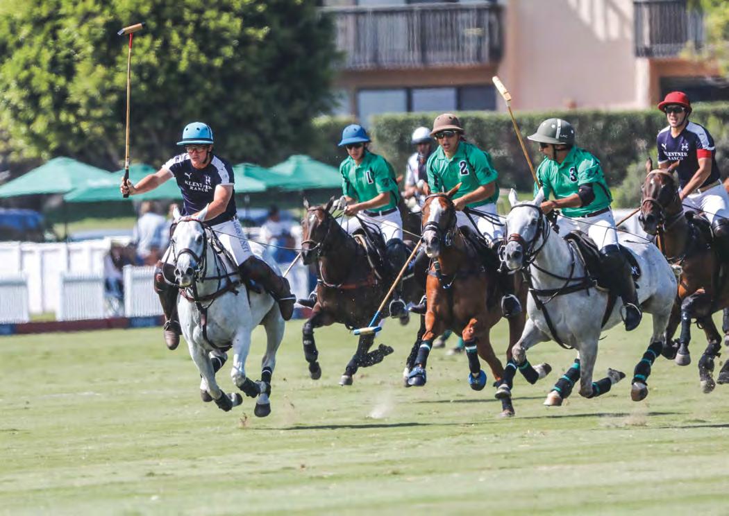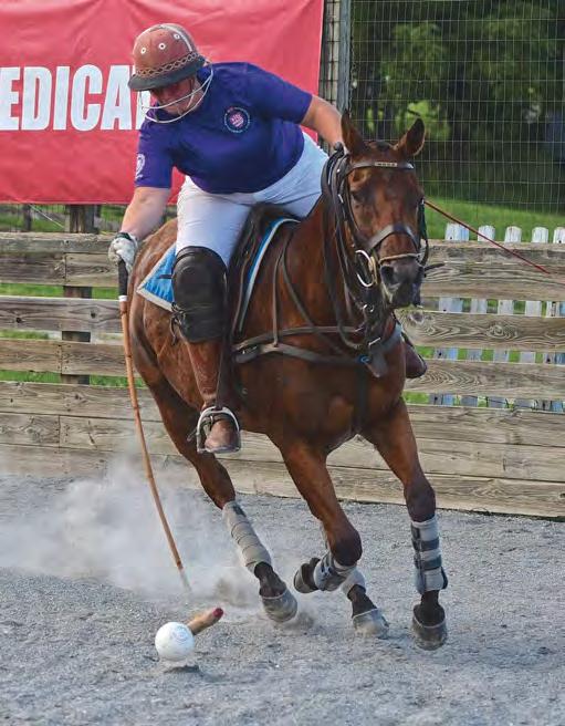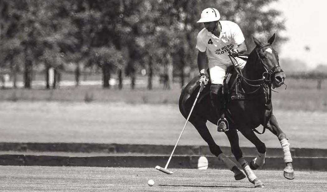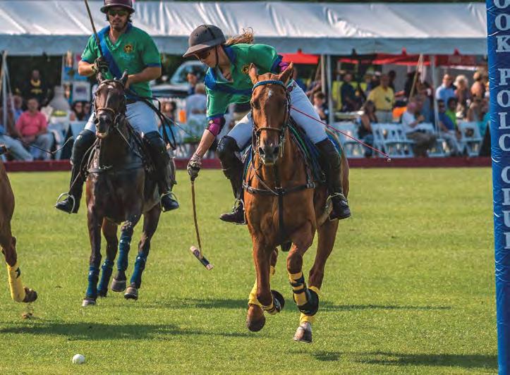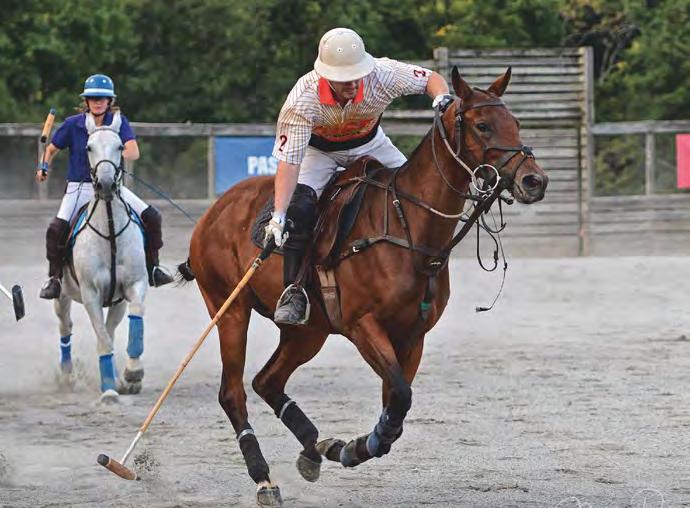 When asked to give his advice to aspiring polo players and newcomers to the sport, McCall quickly answered, “join aclub.”ContrarytopopularbeliefMcCall asserts that you don’t need more than one horse to play polo. “Play two practice chukkers on one horse with a long break in between, and it doesn’t have to be expensive. Go in at the level you want, small scale or big scale,” he said. “Joining a club like New Bridge allows amateurs the opportunity to learn from the people around them. Go to practice, get coached by your peers and if you like it, expand. Estimating about $300 a month for an annual membership, it is well worth the investment. Or get it for free as a property owner!” Not to mention, members and
