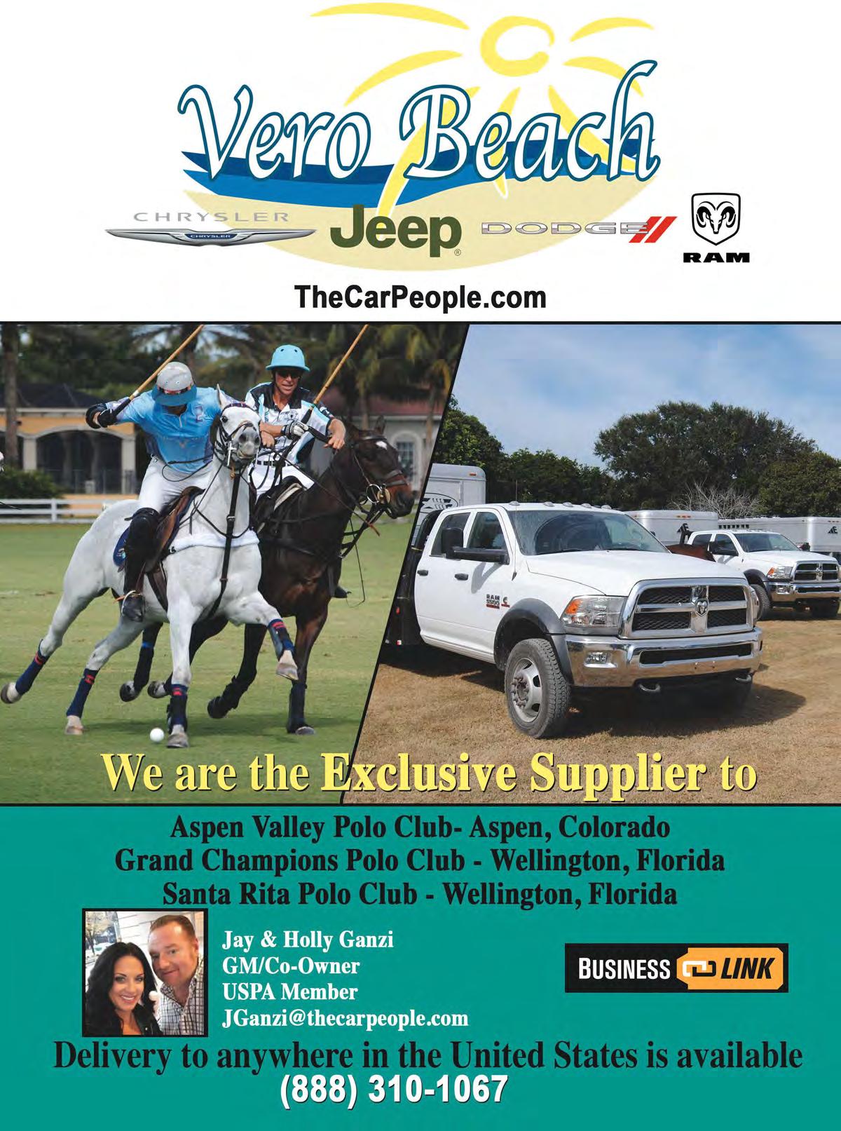 POLO Players’ Edition (ISSN #1096-2255) is published monthly by Rizzo Management Corp. 6008 Reynolds RD, Lake Worth, FL 33449 for U.S. Polo Association, 9011 Lake Worth RD, Lake Worth, FL 33467. Periodicals postage paid at West Palm Beach, FL and additional mailing offices. (USPS: 079-770).