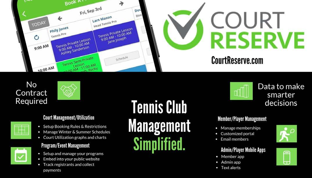 CourtReserve powers clubs worldwide – it’s the all-in-one club management platform to start, grow, and scale your club or instructor business. The comprehensive management solution provides USPTA professionals with the tools they need to excel. From streamlining court