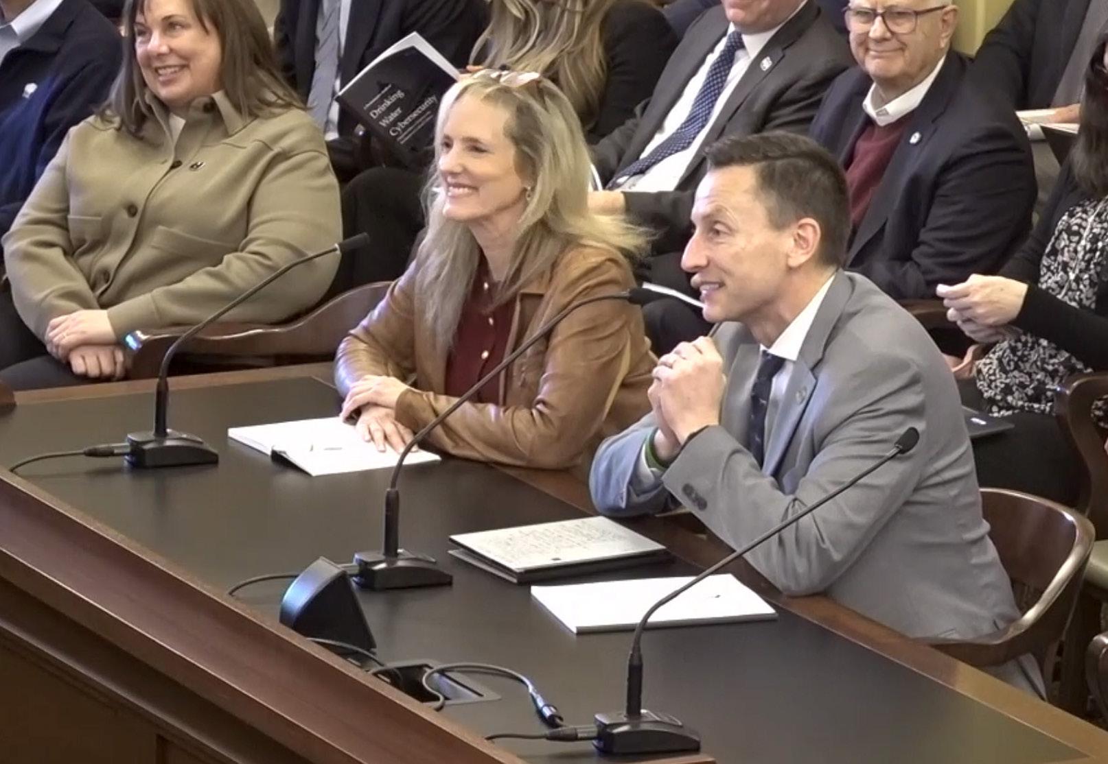 Tessa White and Utah State University President Brad L. Mortensen at the legislative subcomitte meeting at the Utah State Capitol on Jan. 30.