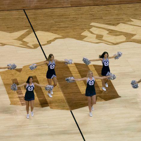 The Utah State Spirit Squad performs at the Mountain West basketball championships in Las Vegas.