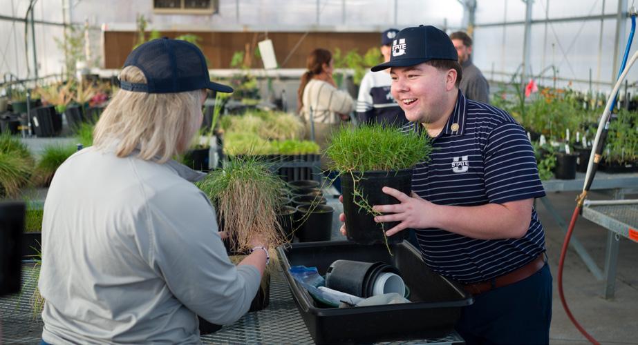 USUSA President Brandon Sorenson in a greenhouse at USU Salt Lake City campus.