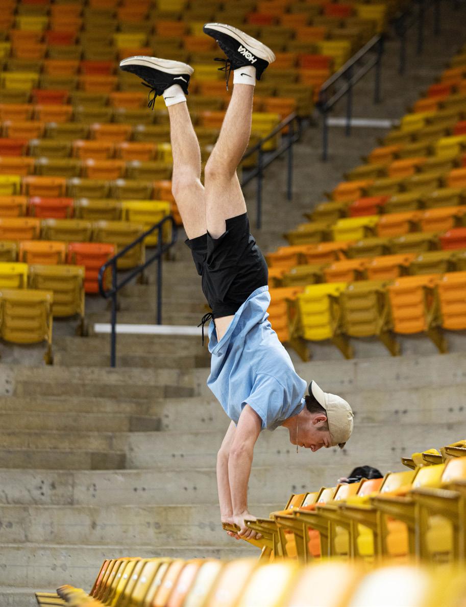 PHOTO BY Jack Burton Clark Croshaw warms up in the Dee Glen Smith Spectrum on Feb. 10.