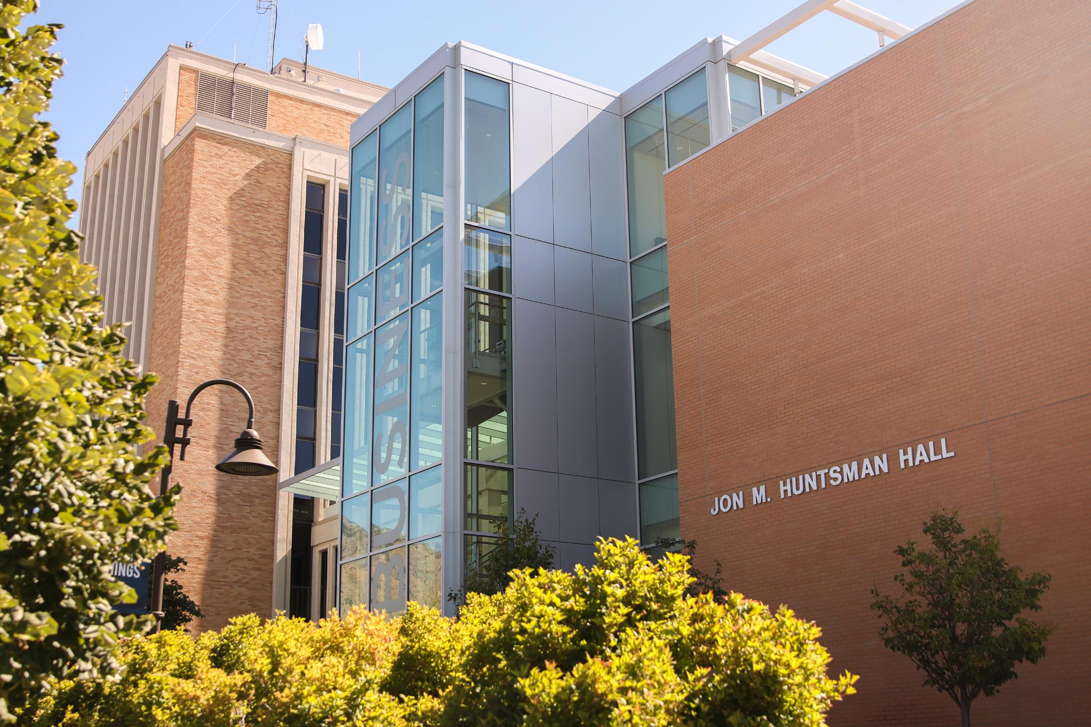 The Jon M. Huntsman Hall, as seen on Sept. 25.