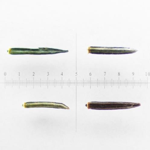Seeds without the chaff (bottom); units are in mm