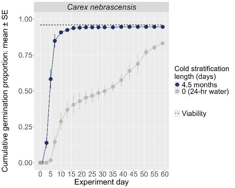 Restoration of native plants in degraded wetlands is essential to recover native plant communities and the critical ecosystem services they provide. These services include supporting biodiversity, improving water quality, providing wildlife habitat, sequestering carbon, and mitigating drought, flooding, and wildfire impacts (Kettenring & Galatowitsch, 2007a). Seeds are commonly used in restoration due to their broader availability, cost effectiveness, and greater scalability than plants. However, seed dormancy can challenge seed-based restoration of wetlands.