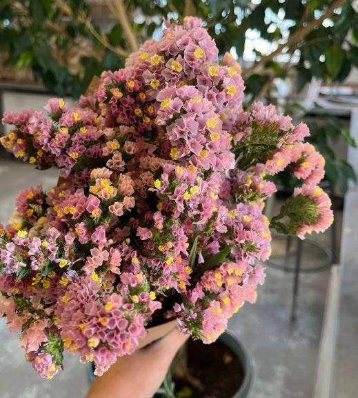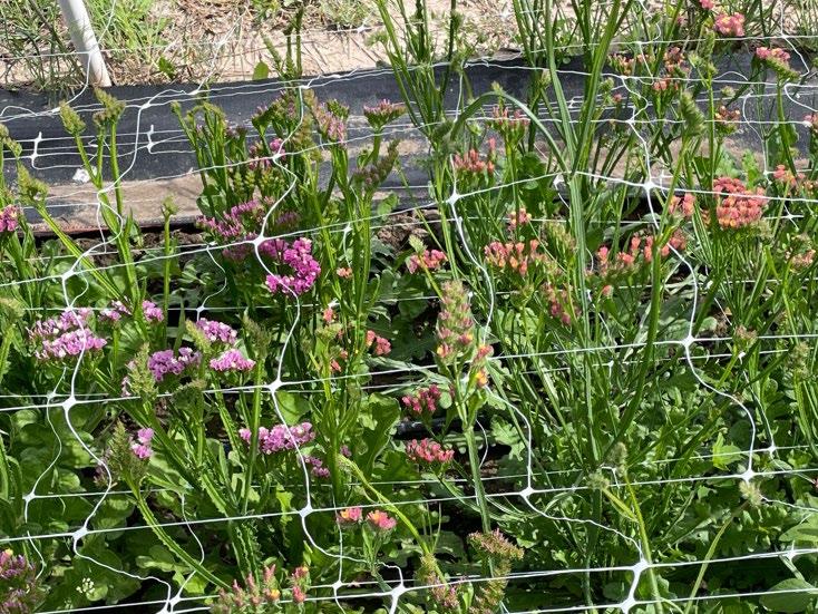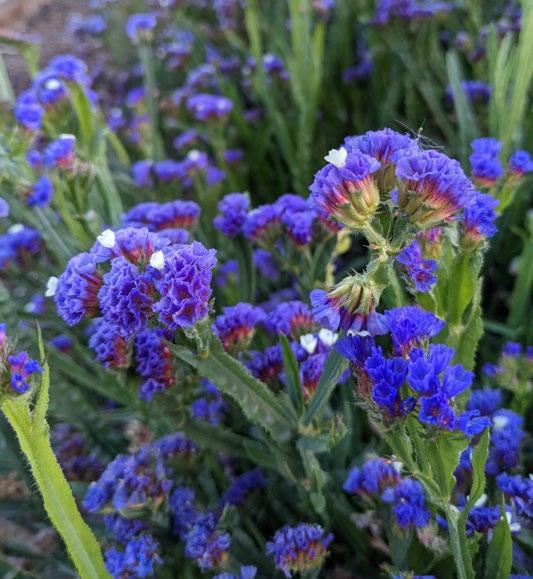 Statice is well-suited to field production and is an easyto-grow annual with low water and medium nutrient requirements. Optimal conditions include loamy, welldrained soil with full sun. Notably, L. sinuatum ‘American Beauty’ and L. perezii ‘Blue Seas’ have been the subject of salinity and recycled water research. The U.S. Salinity Laboratory classified L. sinuatum as moderately tolerant to salinity, and L. perezii as sensitive, after applying saline irrigation water from 2.5 to 30 dS/m in greenhouse trials (Grieve et al., 2005). Stem yield and quality were greatest at 2.5 dS/m, and L. sinuatum continued to produce marketable stem lengths (i.e., >18 in ) at 7 dS/m, while L. perezii could not (Grieve et al., 2005) As many cut flower crops are extremely sensitive to salinity (i.e., thresholds <2 dS/m), L. sinuatum presents a productive option for soils with elevated salinity