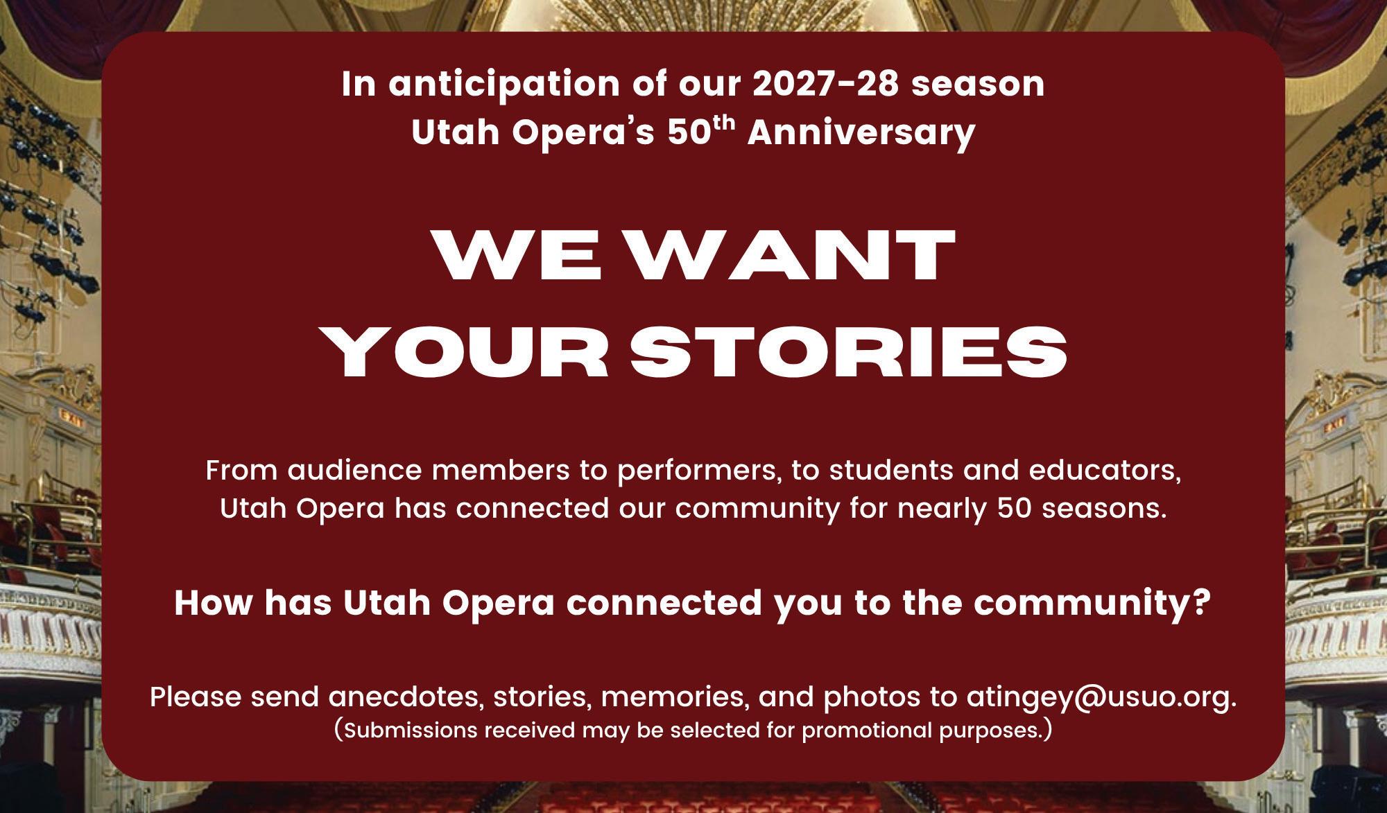 We thank you for the energy you bring to our performances, inspiring our artists to create the best symphonic and operatic experiences for and with you. Your presence matters and we look forward to seeing you outdoors this summer and once again in the marvelous settings of Maurice Abravanel Hall and the Janet Quinney Lawson Capitol Theatre for our 2026–27 season! Please visit USUO.org/schedule for more information about all upcoming performances.