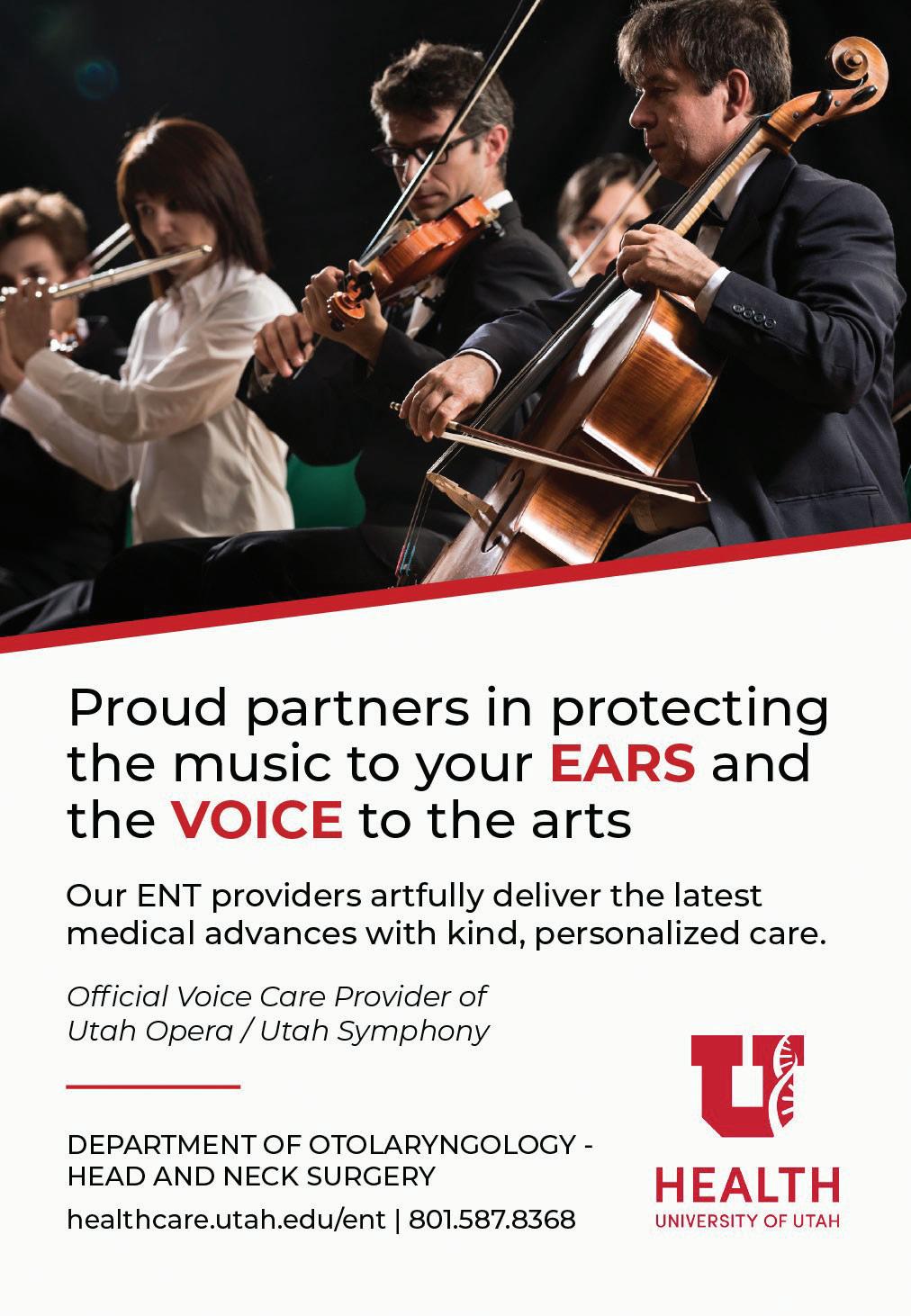 Make a lasting impact while meeting your financial goals today. Including Utah Symphony | Utah Opera in your will is simple, often taxadvantageous, and helps ensure the power of music touches lives for generations to come. To learn more, please reach out to your financial advisor or contact us at: 801-869-9200 usuo.org/planned-giving