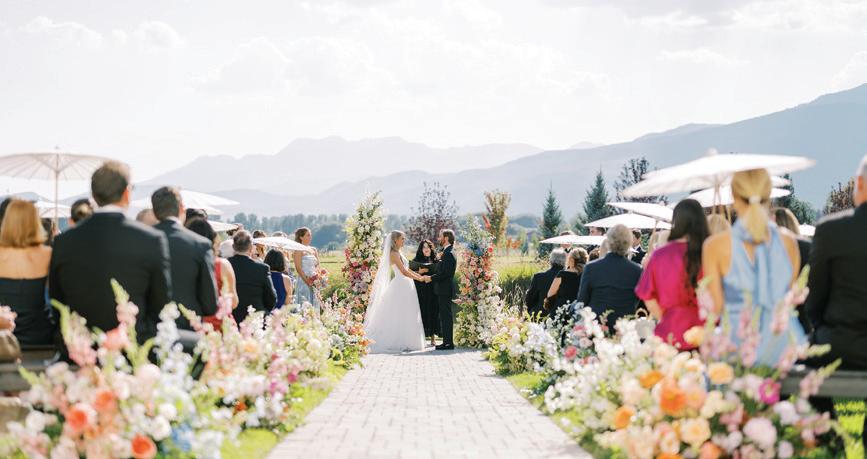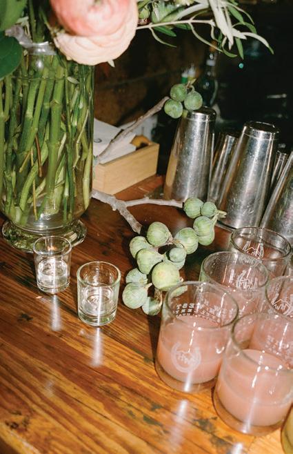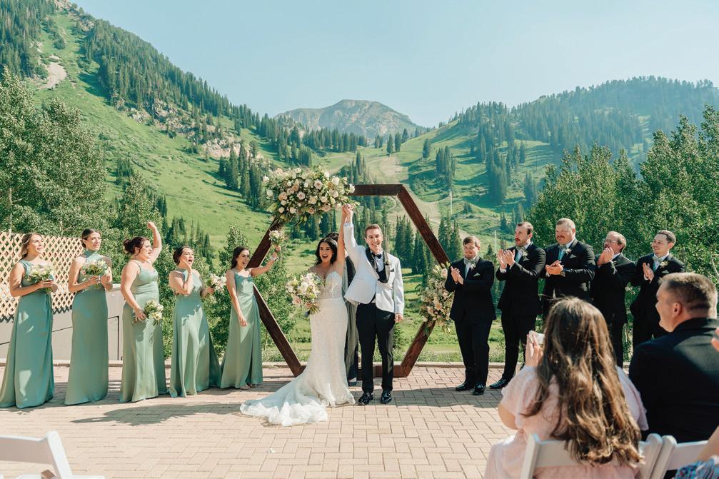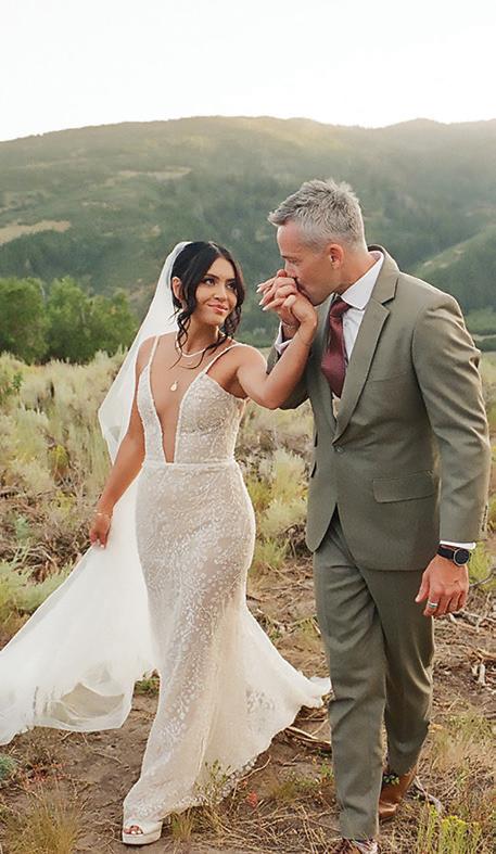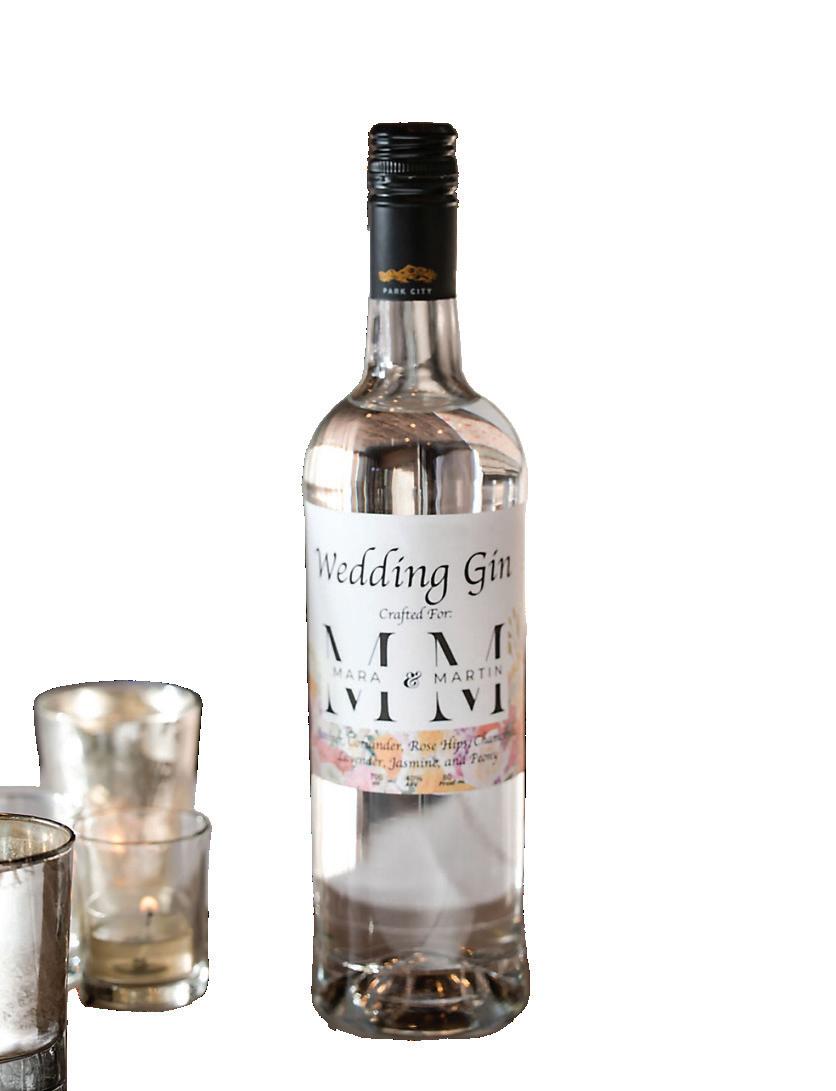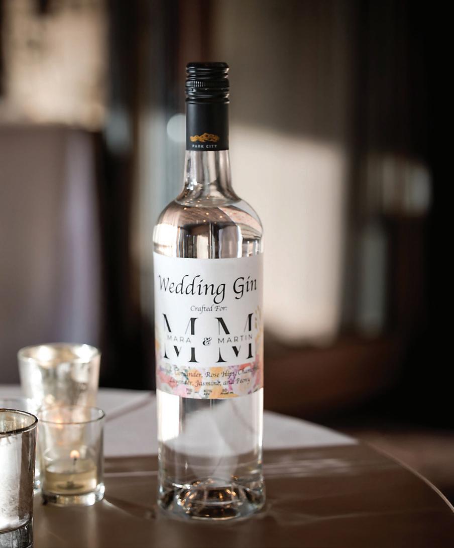 AS A “WARDEN RECTIFIER” member of the London Gin Guild, Sarah Sergent is Alpine Distilling’s Master Botanical Distiller, and one of the most decorated gin-makers in the country. Her Park City distillery and social club serves up craft cocktails, hosts intimate private gatherings and even helps spirit-forward couples create a personalized gin to share with family and friends on their wedding day. Through an immersive two-and-half hour journey, couples learn beginnerfriendly distillation techniques, explore various flavors and aromas and create a lifelong memory with their partner. Each to-be-wed duo is encouraged to flex their creativity: take the recently married Mara and Martin, for example. They drew inspiration from Mara’s bridal bouquet to craft a floral-forward gin with coriander, rose hips, lavender, jasmine and peony. “Turning the bridal bouquet into a custom gin cocktail brought an intimate botanical essence to their celebration,” says Sergent, who worked closely with the couple to bottle their love affair into a sippable story.