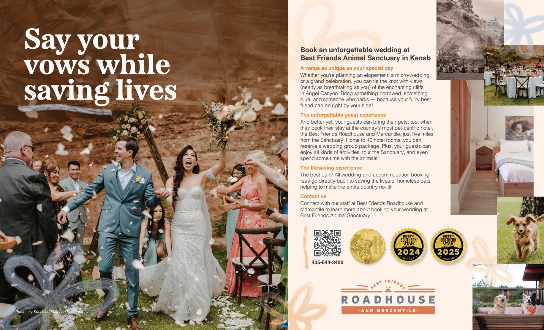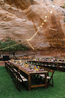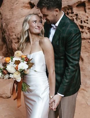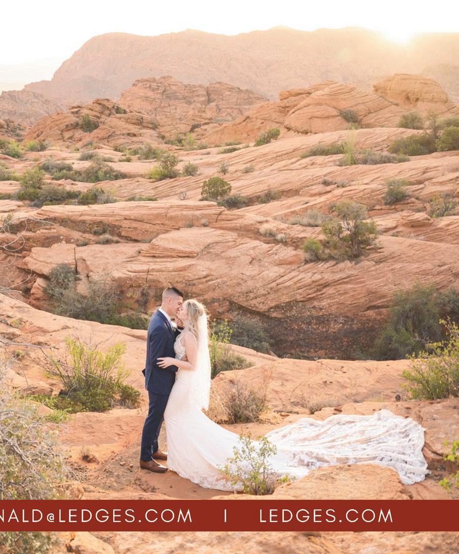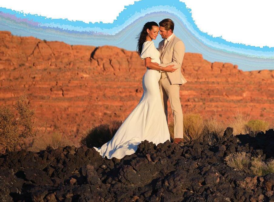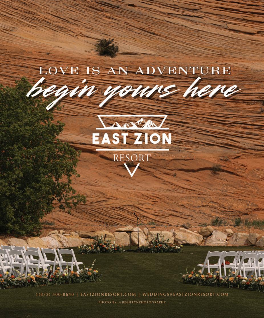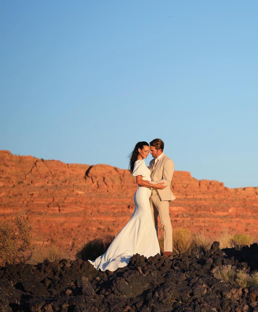 It all starts with the Beginnings, where we explore finding your personal style in every element of your wedding celebration from the bar and the bling to the tabletop and the tailoring. (Page 21). In “The Night Before,” we encourage diving fully into your wedding’s unique vibe, starting with the welcome dinner. (Page 42). If you’re on the hunt for authenticity, explore locally-made accessories in “From Utah, With Love.” (Page 50). Our fashion feature, “Center Stage” gives full permission for the bride to be bold: find a look that demands the spotlight. (Page 98). In our Inspirations section, three teams of wedding pros go bold, whether it be with dramatic lighting and contrast (“Silver Linings,” Page 80), intense color and innovative floral (“Palette Play,” Page 74), or a daring balance of classic and modern touches (“Gallery Stroll,” Page 68). And in “Desert Destinations,” we celebrate Southern Utah’s rapidly developing new identity as a luxurious resort destination. (Page 88). No matter your wedding style, we hope you’ll take a beat during this hectic process, take a breath, and embrace every moment.