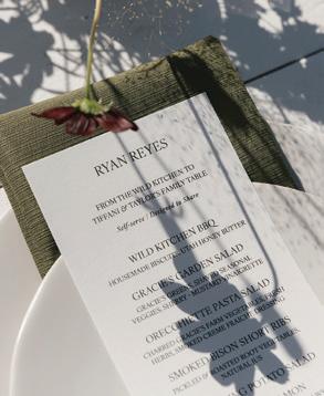 42 THE NIGHT BEFORE Your welcome dinner sets the tone for the wedding weekend—so take advantage.