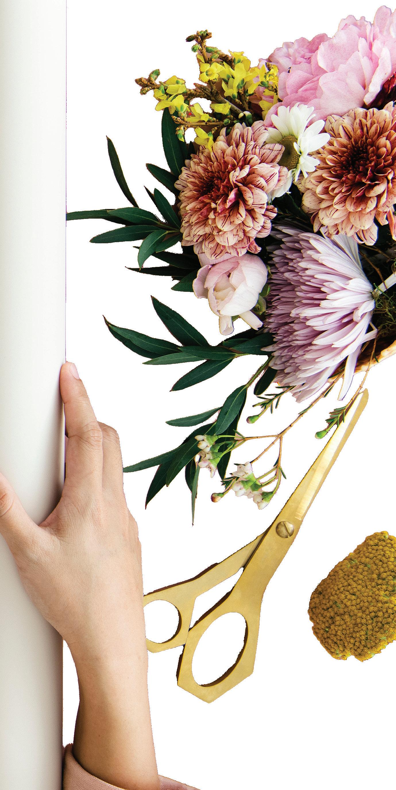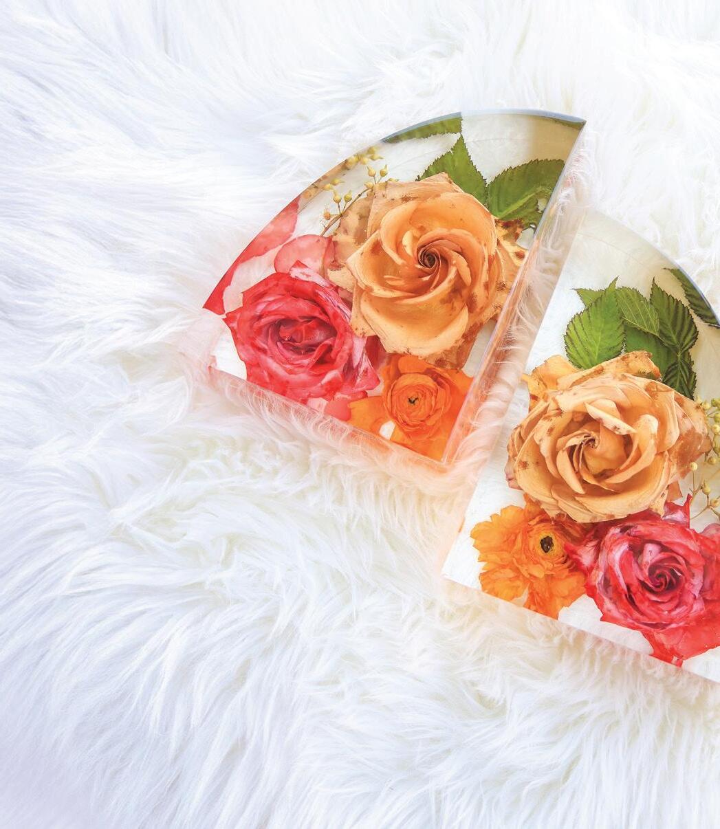 FLOWERS ARE OFTEN ONE OF THE BIGGEST EXPENSES in weddings, and more and more brides are leaning toward extravagant arrangements with rare and exotic blooms. To extend their beauty long after your wedding day, Haley Cunningham of Everbloom Preservation can turn bouquets, boutonnieres and accessories into brilliant, one-of-akind keepsakes.