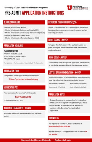 2026 SMP Pre-Admit Application Instructions