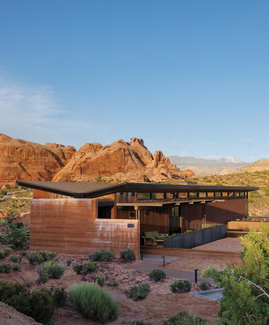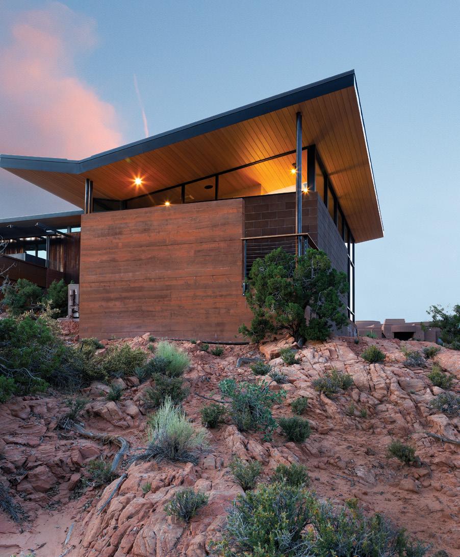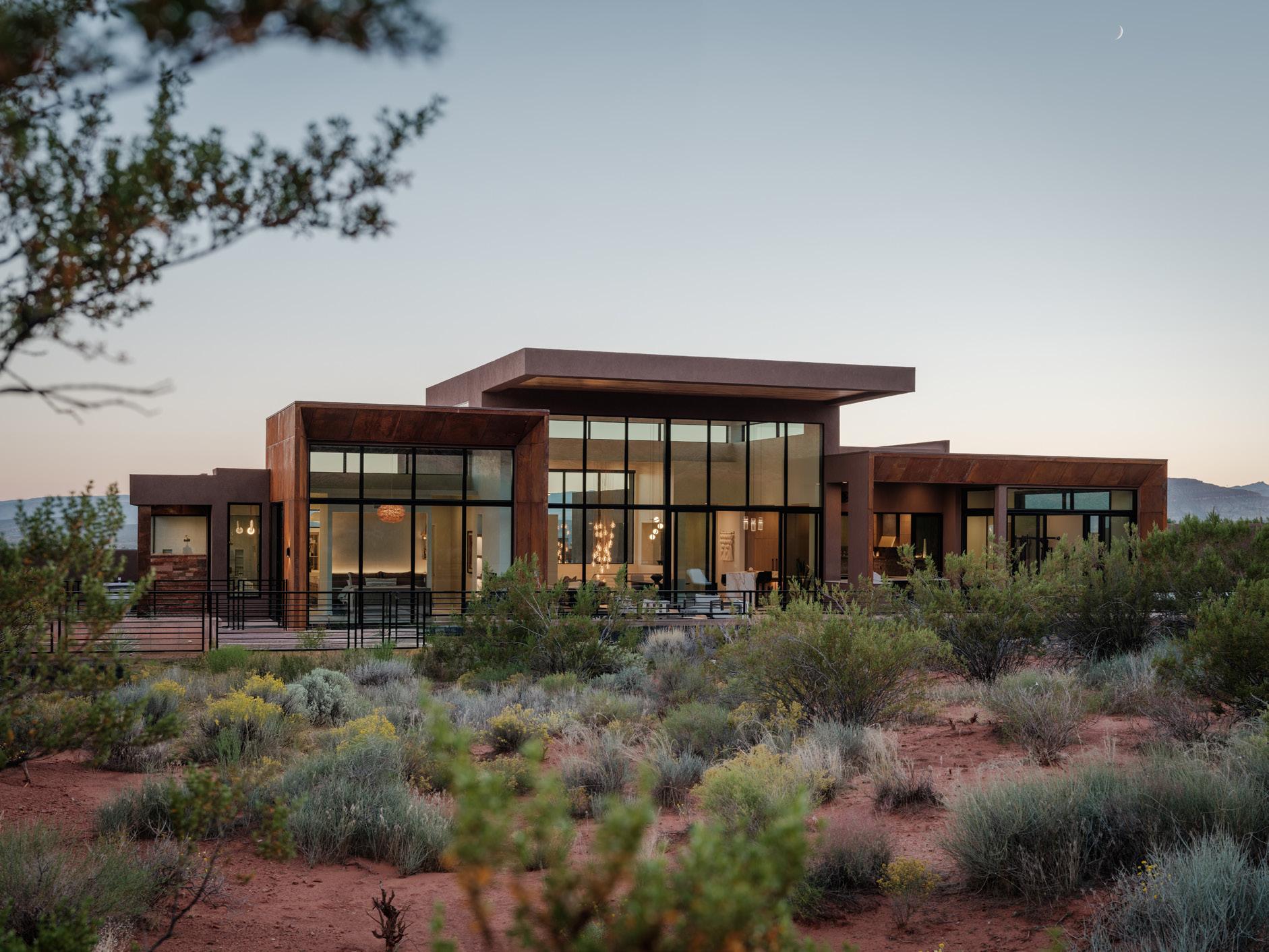 This Moab home invites the outside in with expansive glass, layered forms and a design that turns topographic challenges into architectural poetry