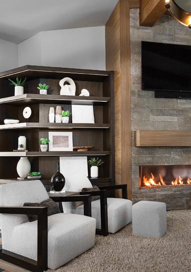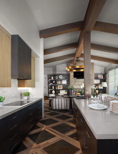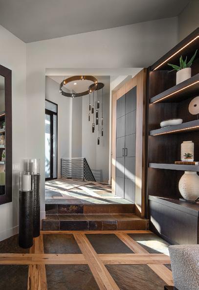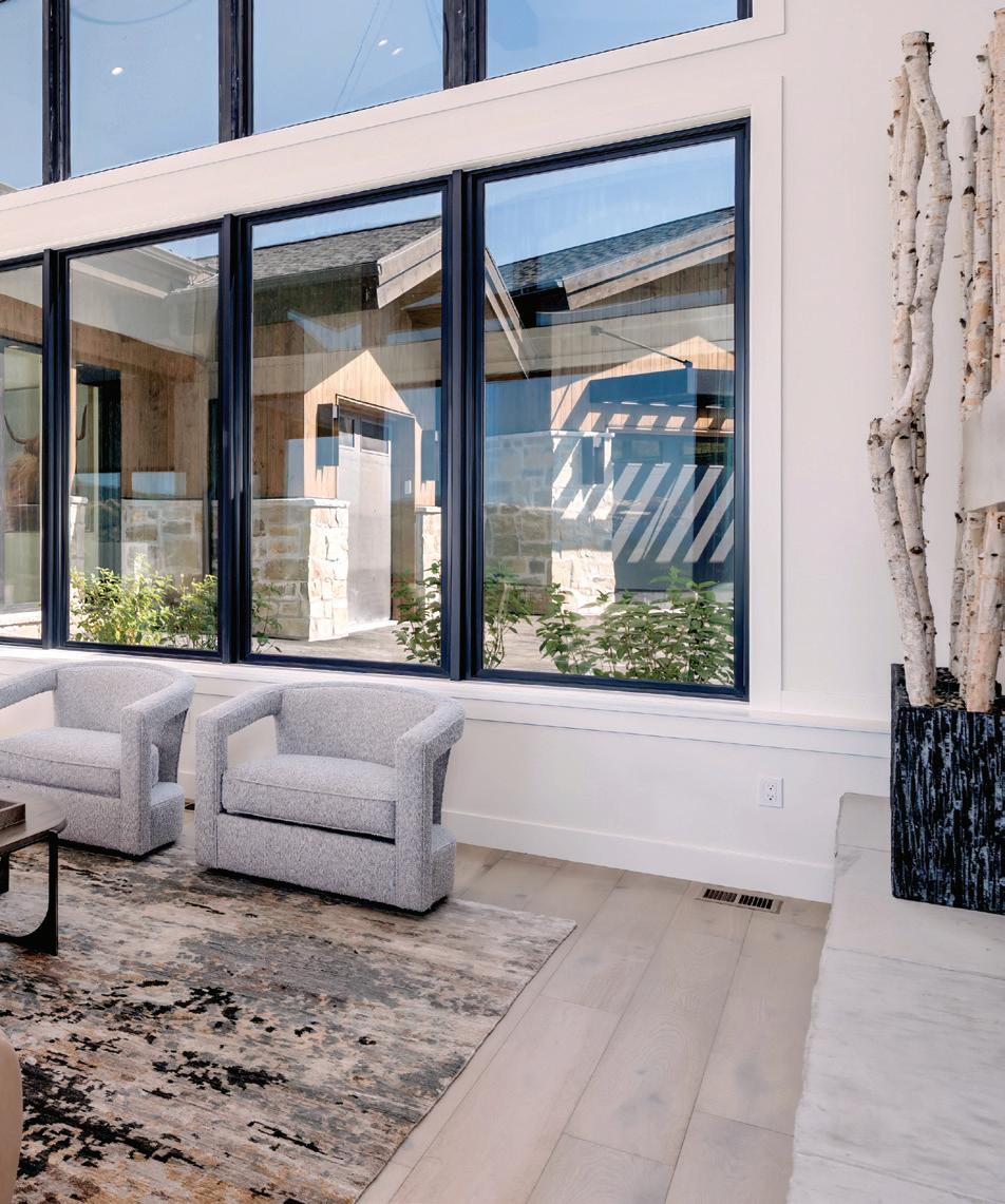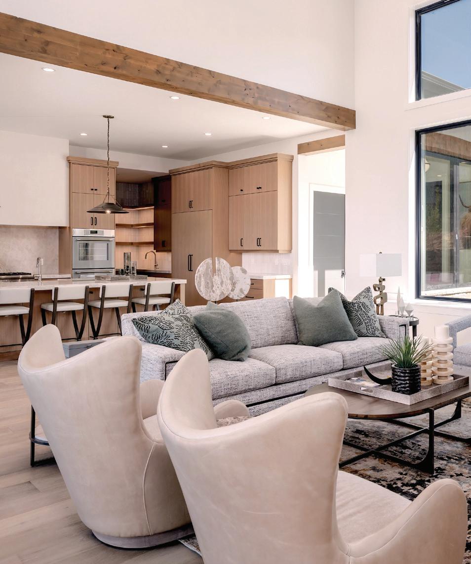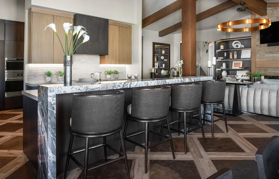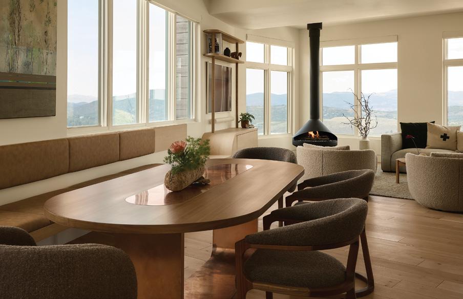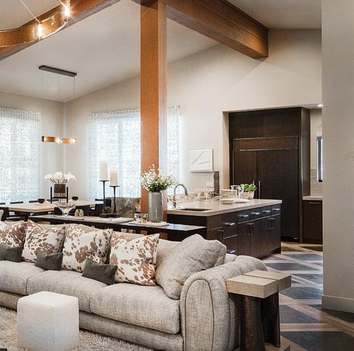 interest. In “Japandi Elevated,” (page 74), the serene coziness of both Japanese and Scandinavian design meet in an idyllic mountain retreat. And in “Alpine Modern” (page 68), the soft glow of chandeliers, a brawny stone mantel and refreshed wood flooring deliver new life into a Park City home.