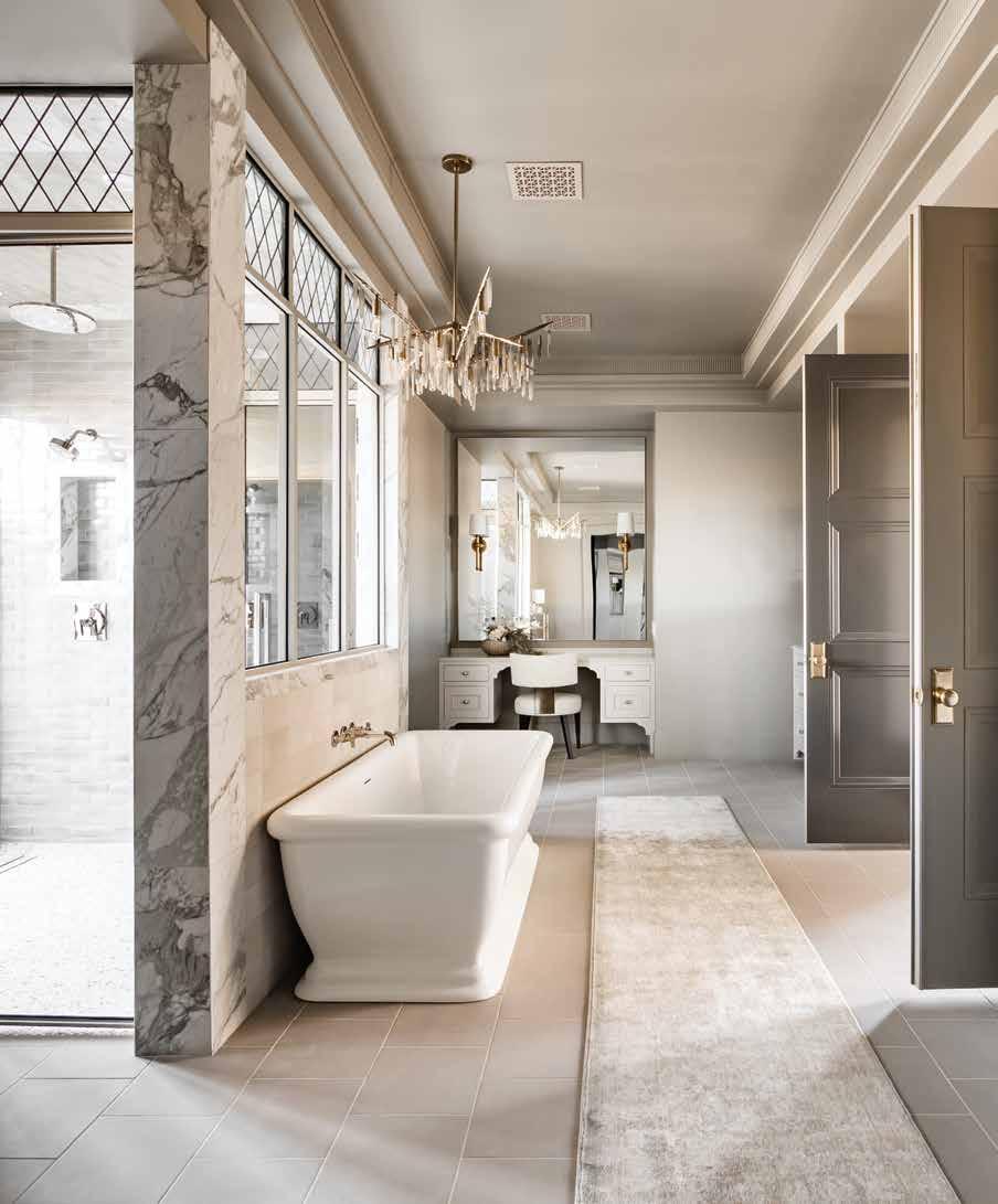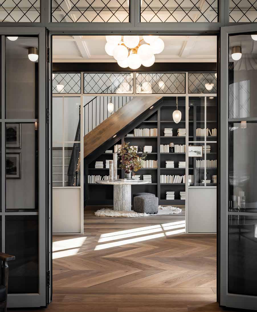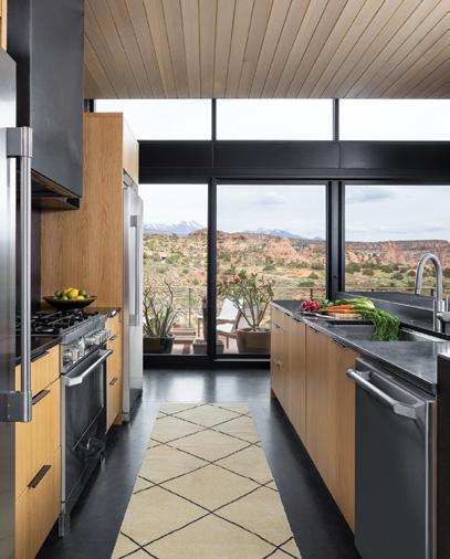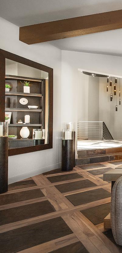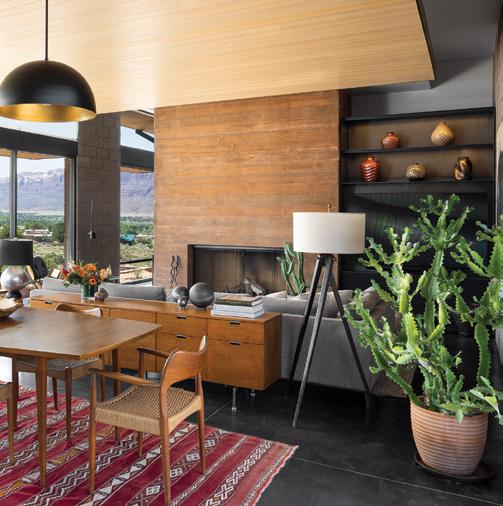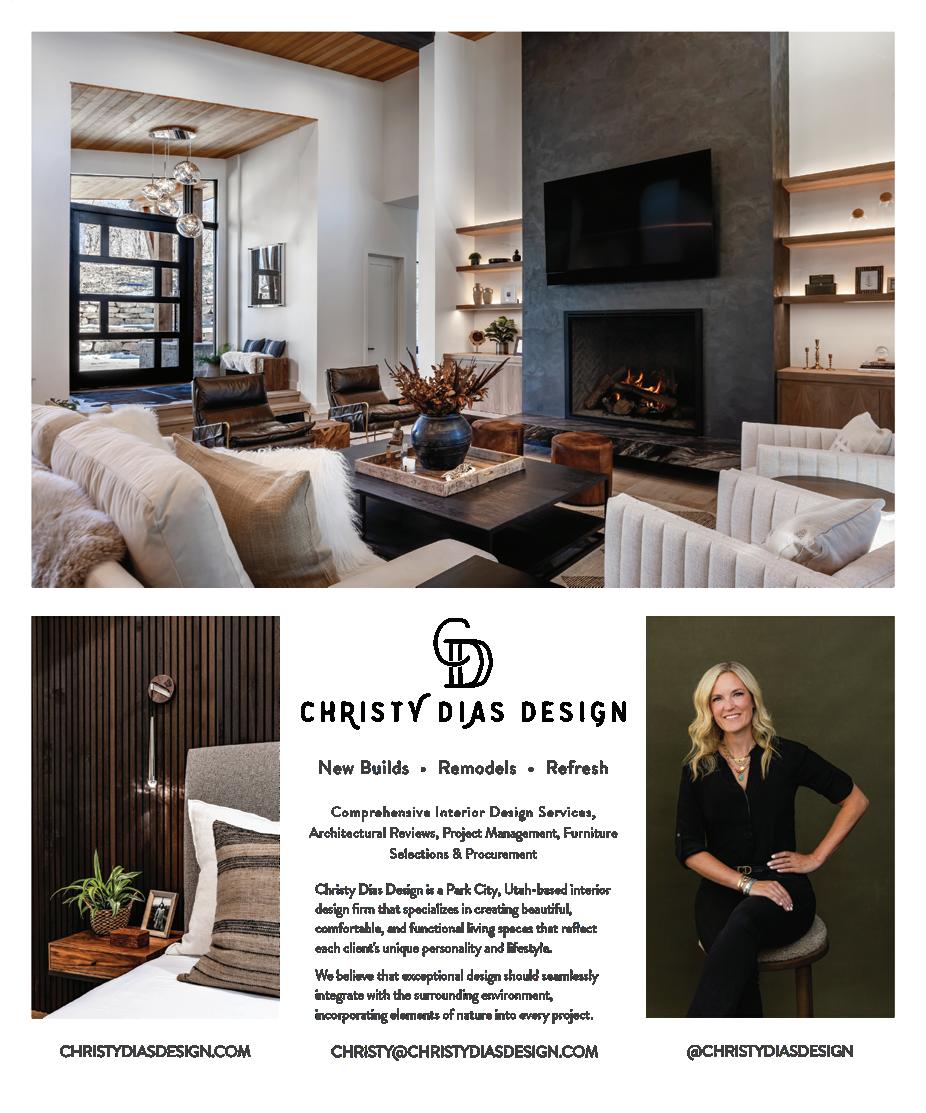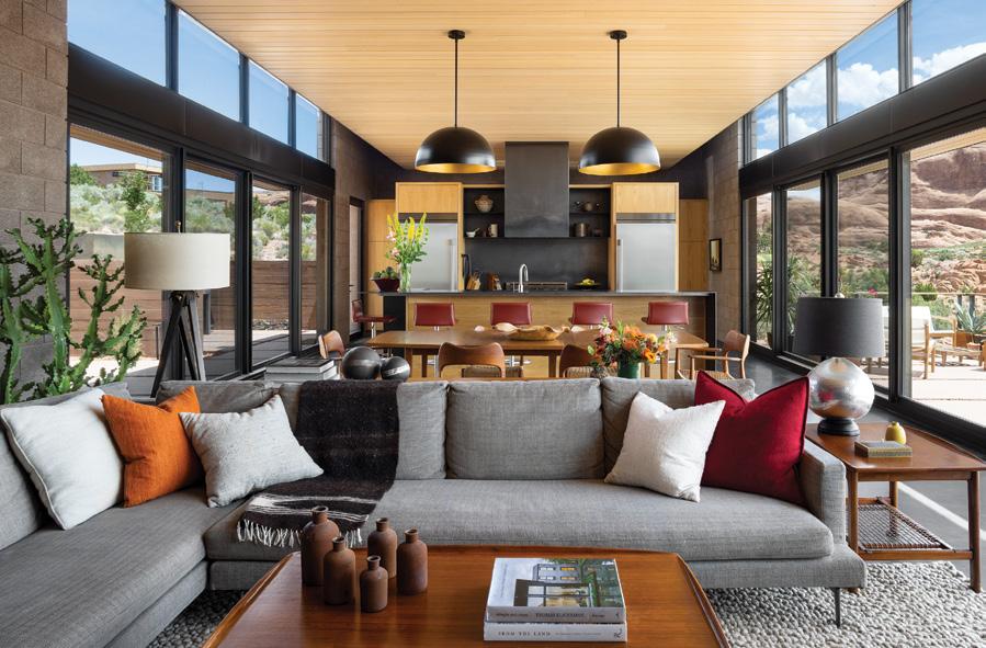 interest. In “Japandi Elevated,” (page 74), the serene coziness of both Japanese and Scandinavian design meet in an idyllic mountain retreat. And in “Alpine Modern” (page 68), the soft glow of chandeliers, a brawny stone mantel and refreshed wood flooring deliver new life into a Park City home.