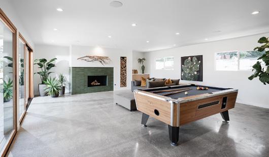 1. A large oculus invites natural light into an Alpine poolhouse courtyard, where rounded bench seating surrounds a calming Japanese maple. Home and interior by Ezra Lee Design + Build.