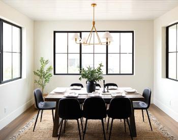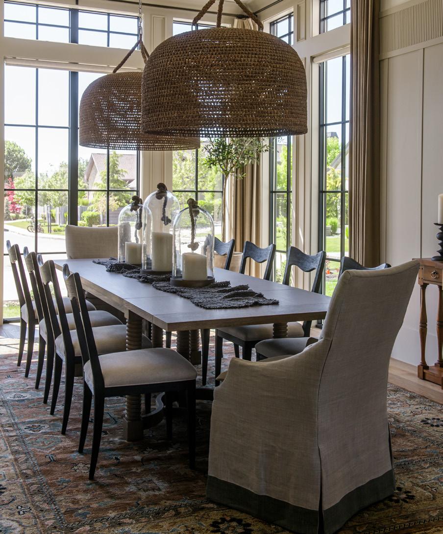 3. I n Orem, a round area rug serves as the foundation for a dining room awash in rich color and natural light. Home by Robison Home Builders; interior by Interior Concepts Design.