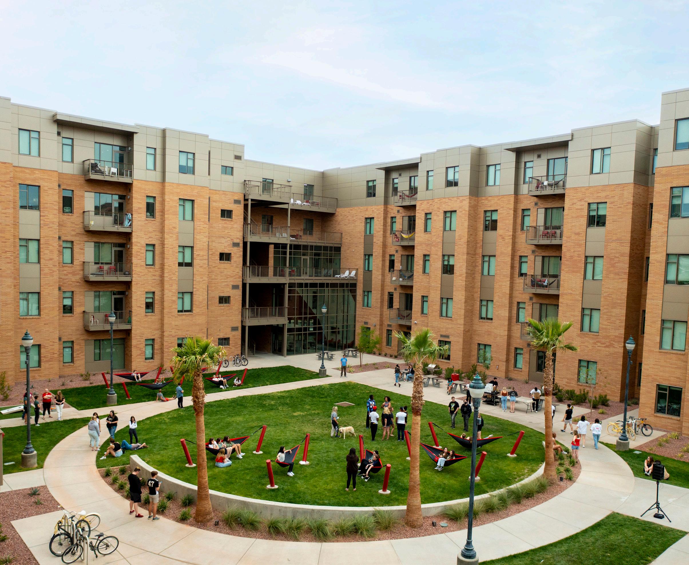 Experience the ultimate college experience at Campus View Suites, home to 1,450 Trailblazers in an on-campus community. Living on campus means more than just a place to stay – it’s an environment designed for your academic and personal growth. When you need to unwind, enjoy swaying in a hammock, playing a game of pickleball, or cooking a meal with friends.