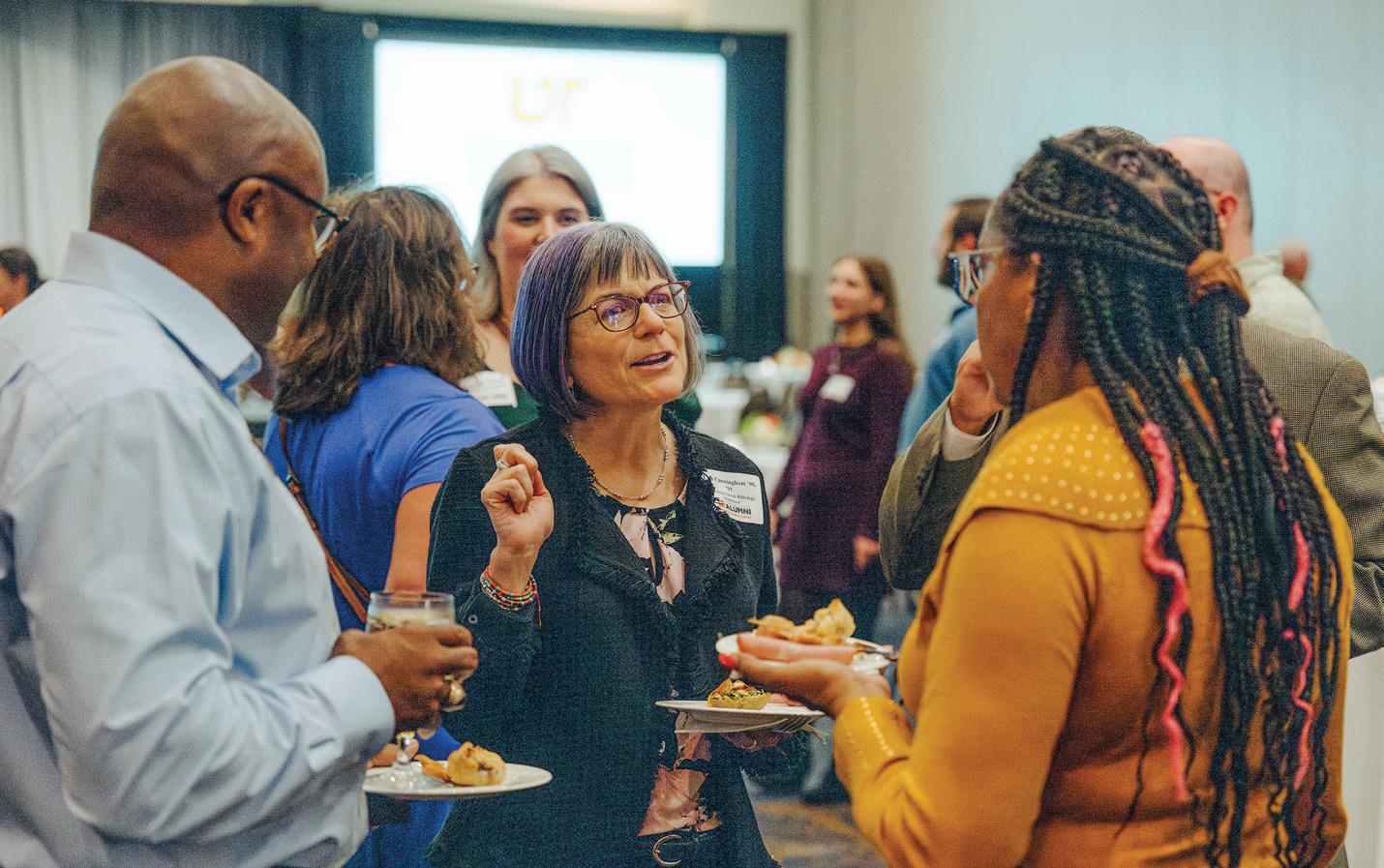 Dr. Lisa Cunningham (center) talking with former classmate and current ASP Community Development Board member, Dr. James Martin, and his wife, Dr. Karen Martin. All are alumni of ASP. Dr. Cunningham, a scientific director at NIDCD, NIH and recent UT Health Science Center Alumni Award winner, spoke at the reception.