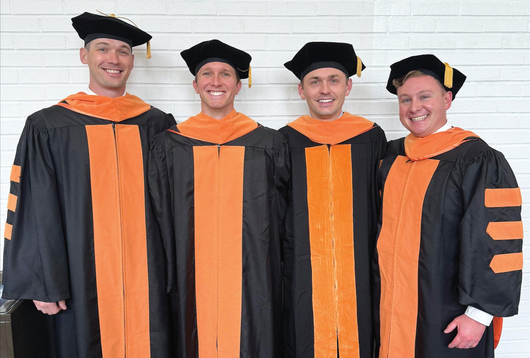 The four men reunited in 2021 when they all decided to pursue their DNP at the college. Dr. Kirby and Dr. Stauffer entered the three-year program in nurse anesthesiology, while Dr. Keathley pursued the family nurse practitioner degree, and Dr. Gray began the DNP concentration in acute care. They graduated together again in 2024.
