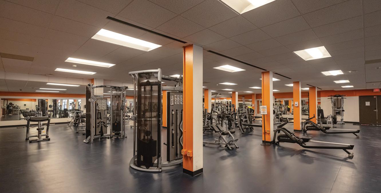 Campus Recreation services provide group fitness classes, personal training, intramural sports, and affordable outdoor camping and boating rentals. The fitness center includes group fitness rooms, weightlifting and cardio equipment, a bouldering wall, swimming pool, and hot tub.