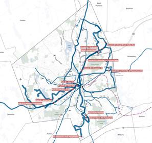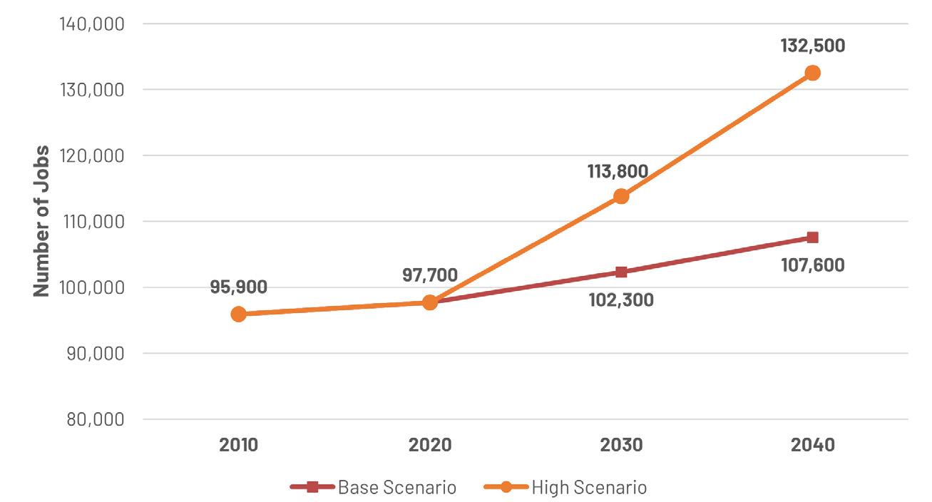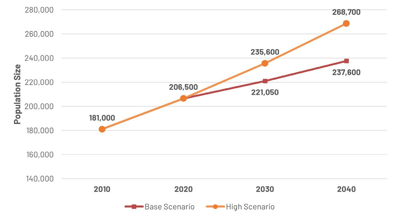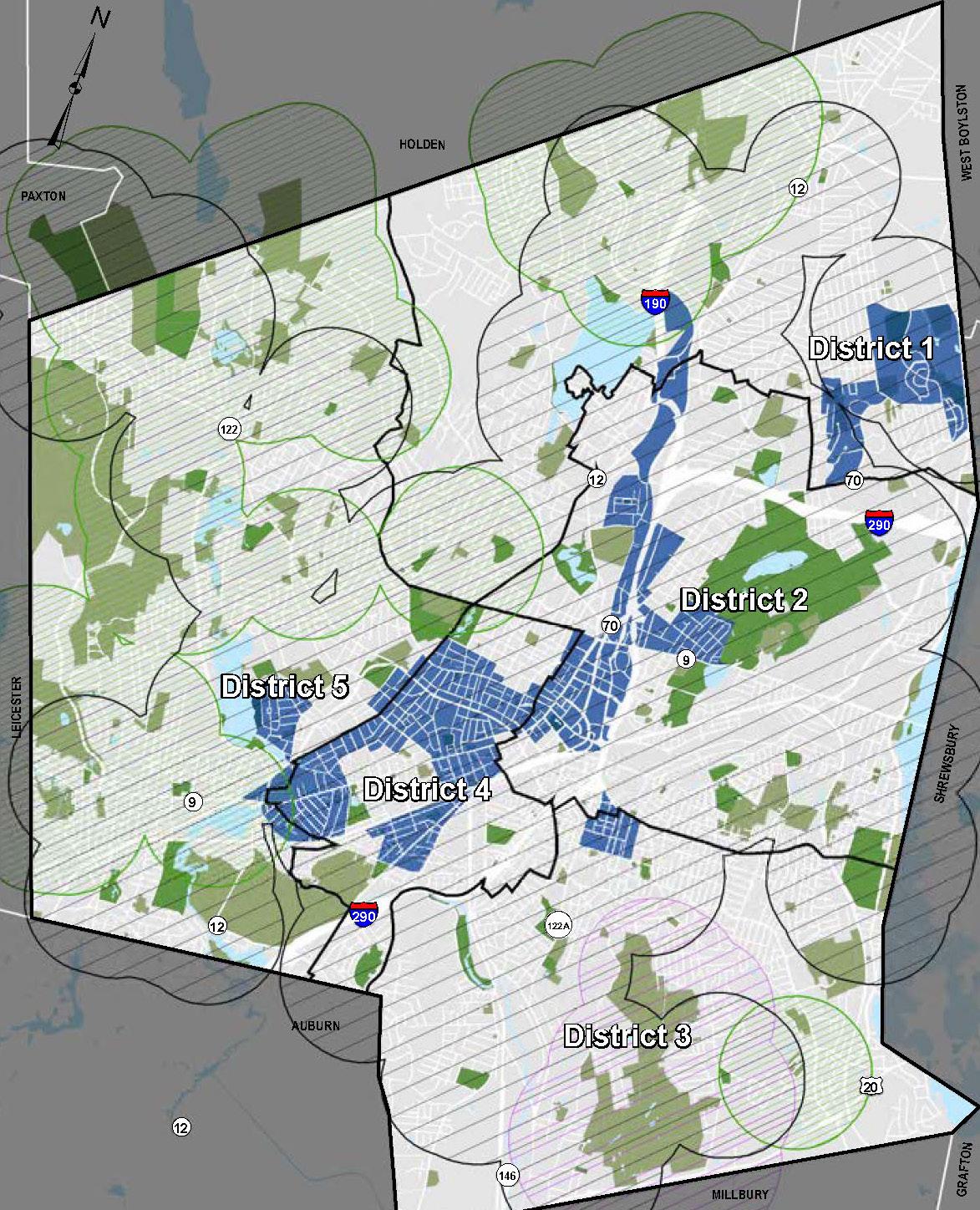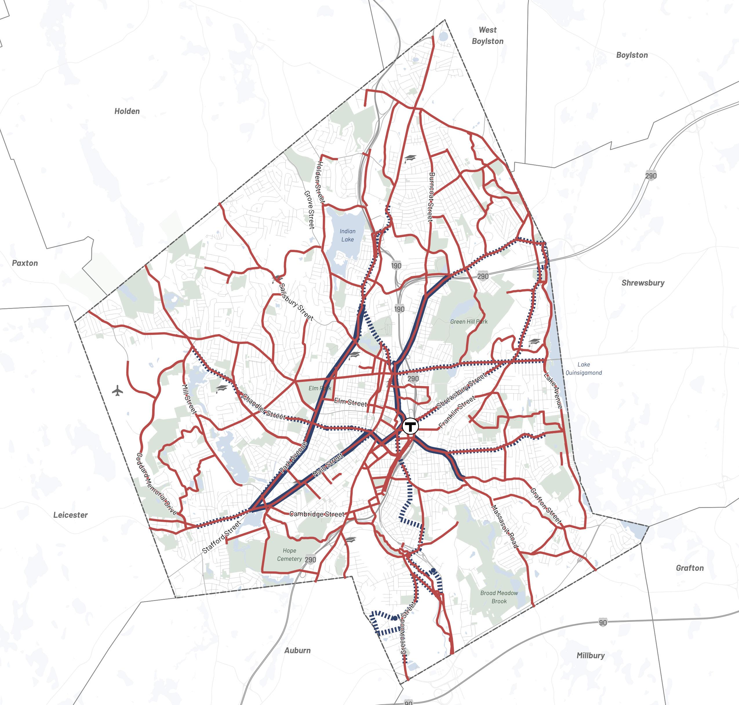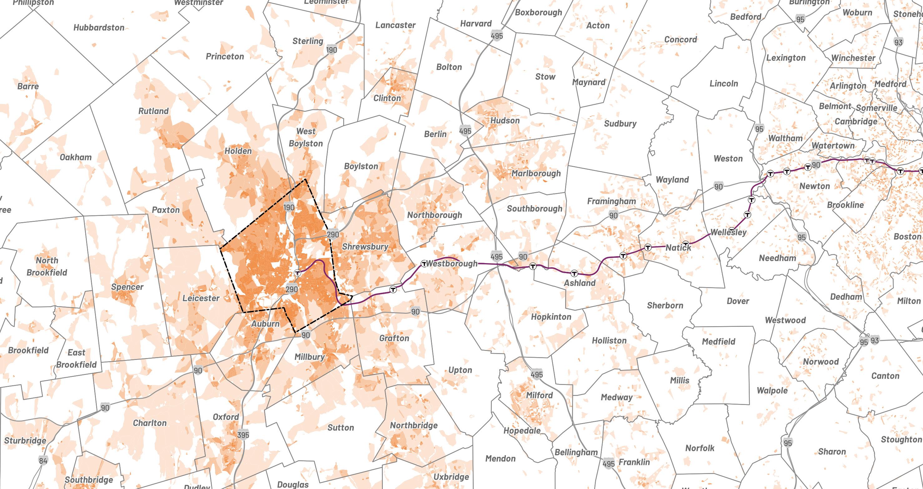The planning team worked with the City of Worcester Advisory Committee to identify key areas to which future development would be targeted for transformation into denser mixeduse corridors and centers. Each Transformative Growth Area (TGA) and Infill Growth Area (IGA) is primed for future development due to some combination of its proximity to Downtown, connection of key urban nodes, infrastructural capacity (such as a wide roadway to accommodate denser development), or status as a local gathering place. Most of these areas likely require policy changes, in the form of revisions to underlying zoning or addition of a zoning overlay, to efficiently unlock their full development potential. Assuming development is channeled to TGAs and IGAs to maximize their potential, the five areas identified for close study–Park Avenue, Lincoln Street, Chandler Street, Shrewsbury Street, and Tatnuck Square–can absorb the majority of Worcester’s demand for residential space through 2040.