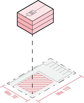 Once identified, the soft sites were tested for their capacity for multi-family residential development. A multi-family residential building comprising five stories of residential units over street level amenity and/or commercial spaces—commonly called a “5-over-1” in the development community—was the first building type to be tested on soft sites because of its efficiency in providing the greatest number of residential units in the smallest footprint.