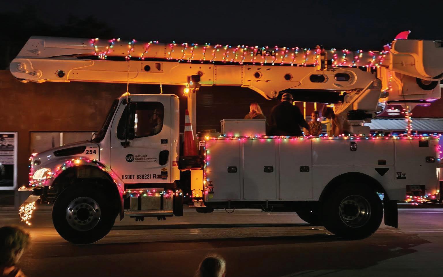 GCEC employees decorated a bucket truck with lights for the 2025 Wewahitchka Christmas Parade.