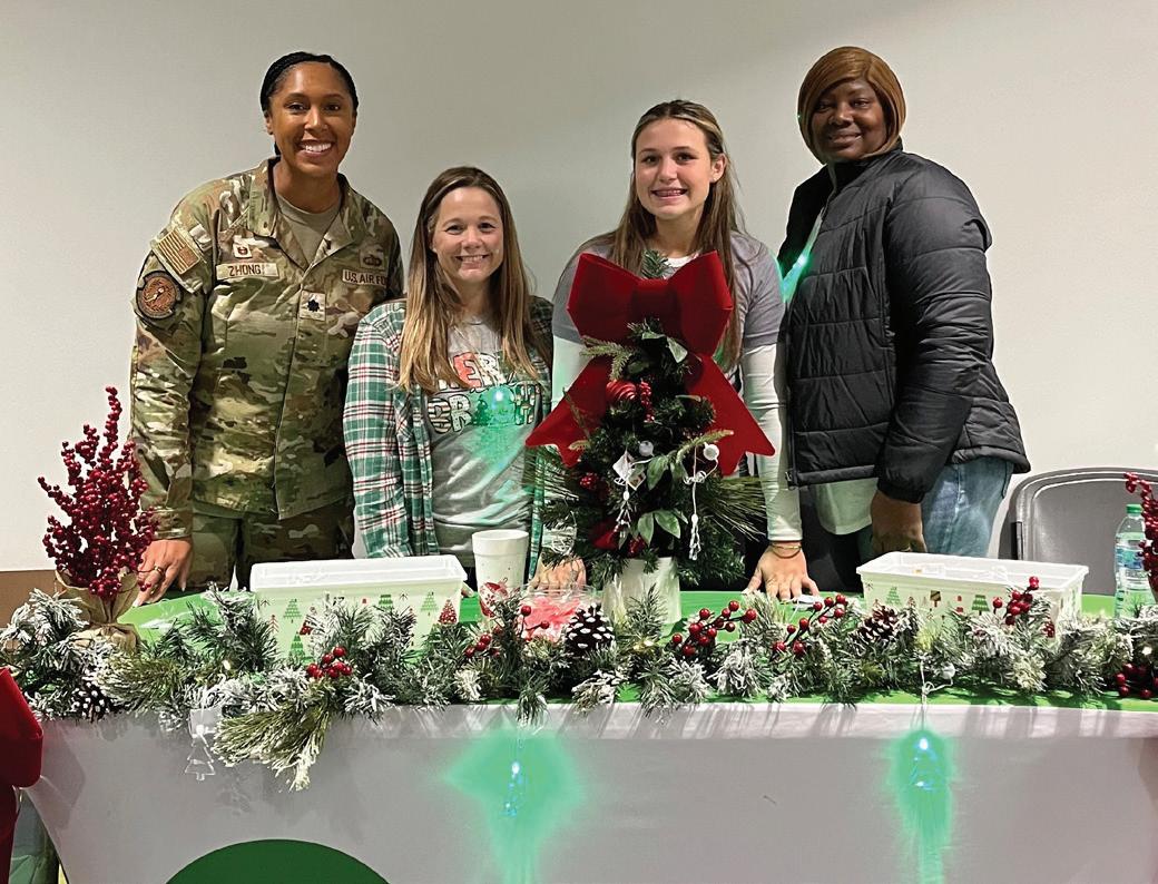 At Tyndall Air Force Base, GCEC sponsored the annual tree-lighting ceremony. Pictured at the event, from left, are Lt. Col. Dominique A. Zhong, Lindsay Peak and her daughter, Brystol; and Tina Polk.