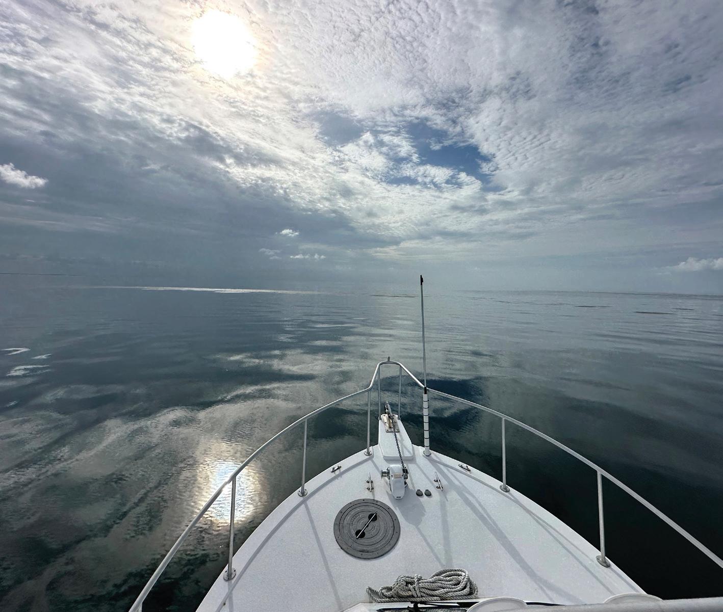 During a flat, calm day on the water just off of Marathon, Brenda Altmeier caught a serene moment as the sky reflected in the stillness of the Florida Keys National Marine Sanctuary.