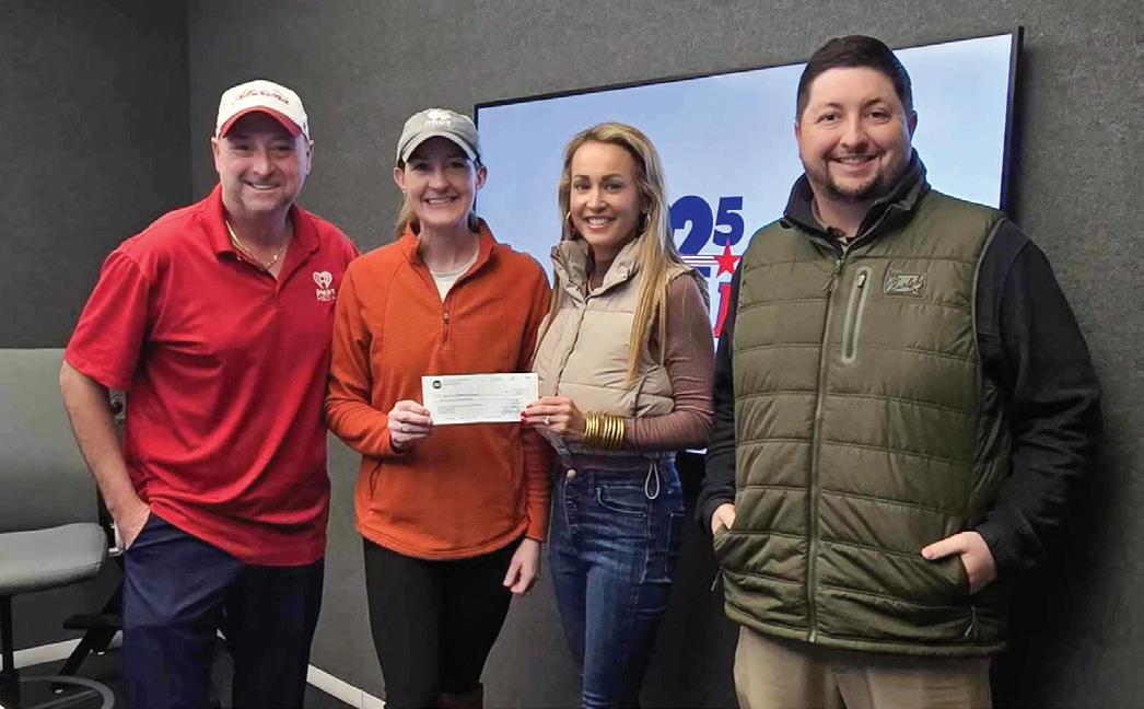 Kristin Douglas, of GCEC, second from right, and Tyler Wood, of Choctawhatchee Electric Cooperative, right, present an on-air donation in December during the 2025 92.5 WPAP Country Cares St. Jude Kids Radiothon. Dr. Shane Collins, left, and Tess Connell, of 92.5 WPAP, accept the donation. GCEC, Choctawhatchee Electric Cooperative and West Florida Electric Cooperative served as the online donation center sponsors.