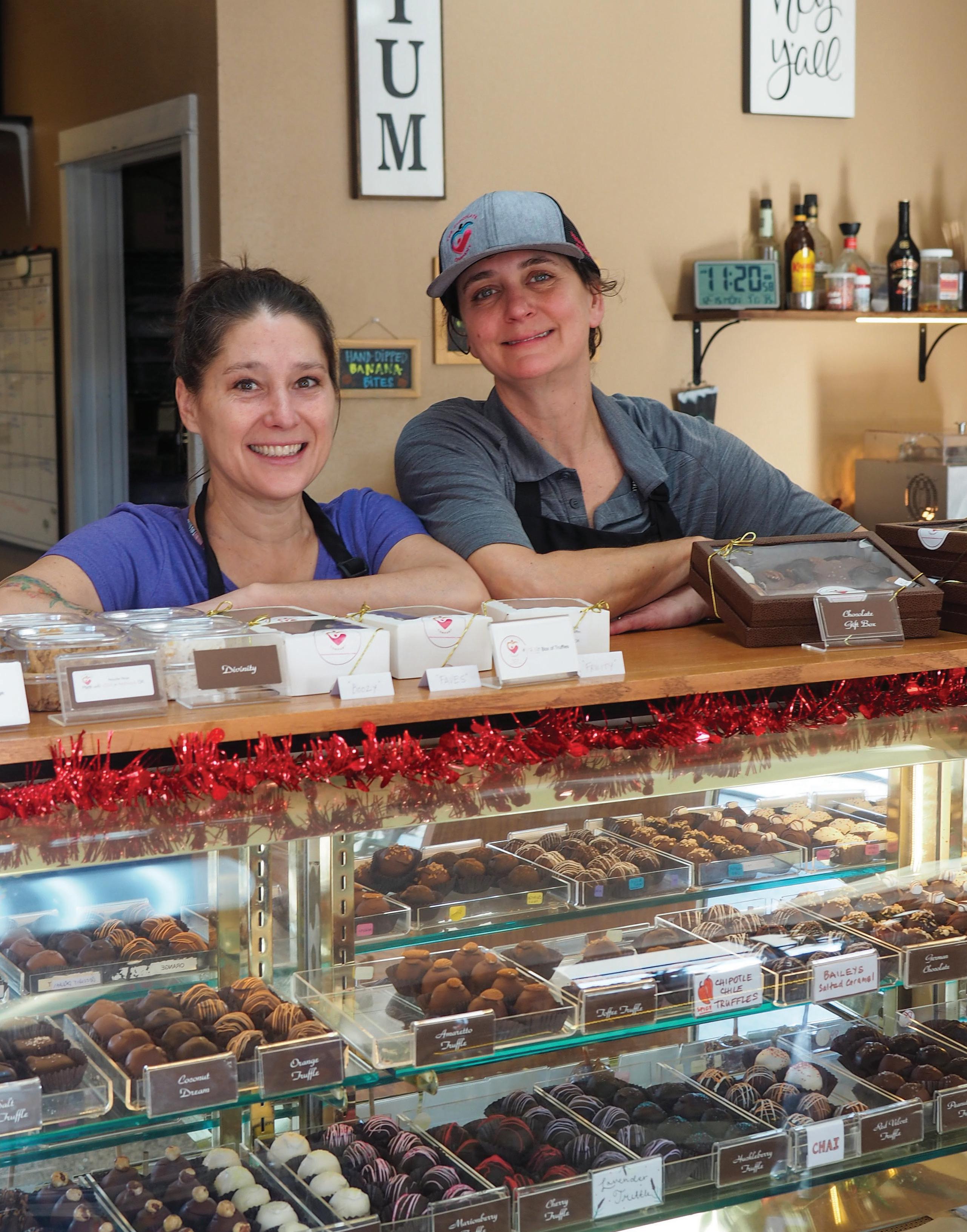 Behind the counter, you may find the owners, Stephani Whitney and Stephanie Voss, who proudly hand-dip truffles or work a copper kettle to make a new batch of caramel popcorn.